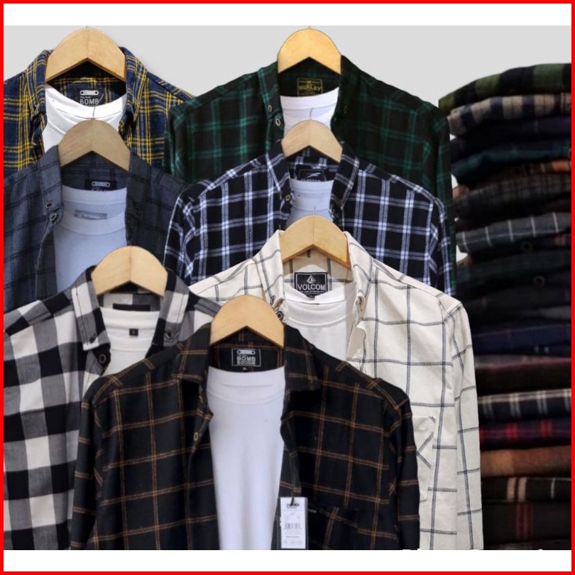 Kemeja Flanel Pria Impor Kualitas Premium Unisex Lengan Panjang Hem Flanel