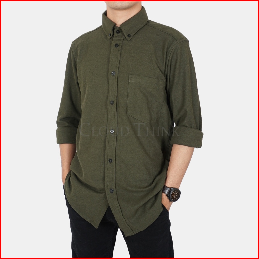 Kemeja Pria Lengan Panjang Hijau Army Army Original Cotton Pique Best Quality