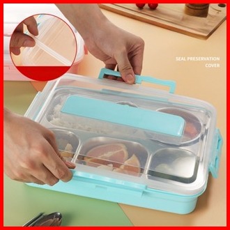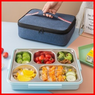 Lunch Box Tempat Makan Sekat Plus Tas Bekal Stainless 304 Food Grade Free Sendok Sumpit Anti Tumpah