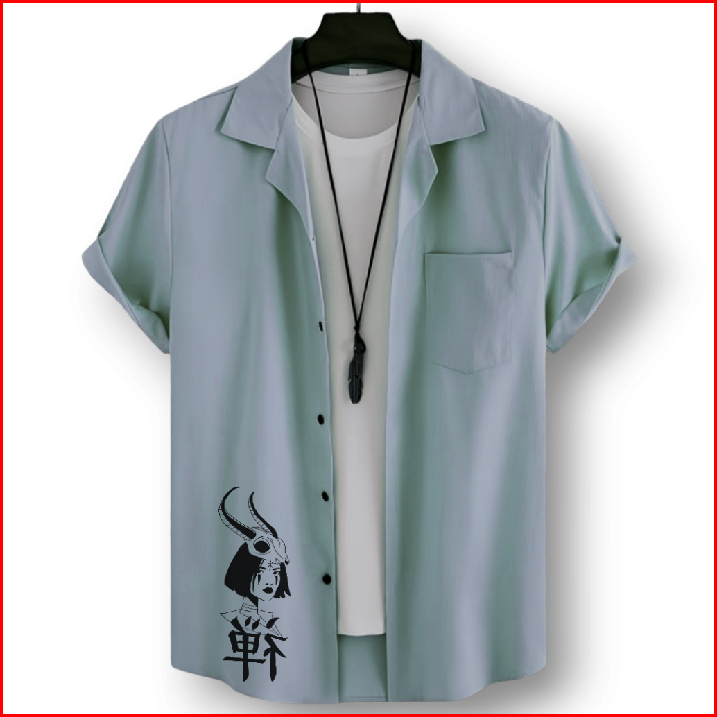 Kemeja Vintage Pria Lengan Pendek Kemeja Polos Pria Dengan Motif Anime Japan Korean Style Terbari Kemeja Pria