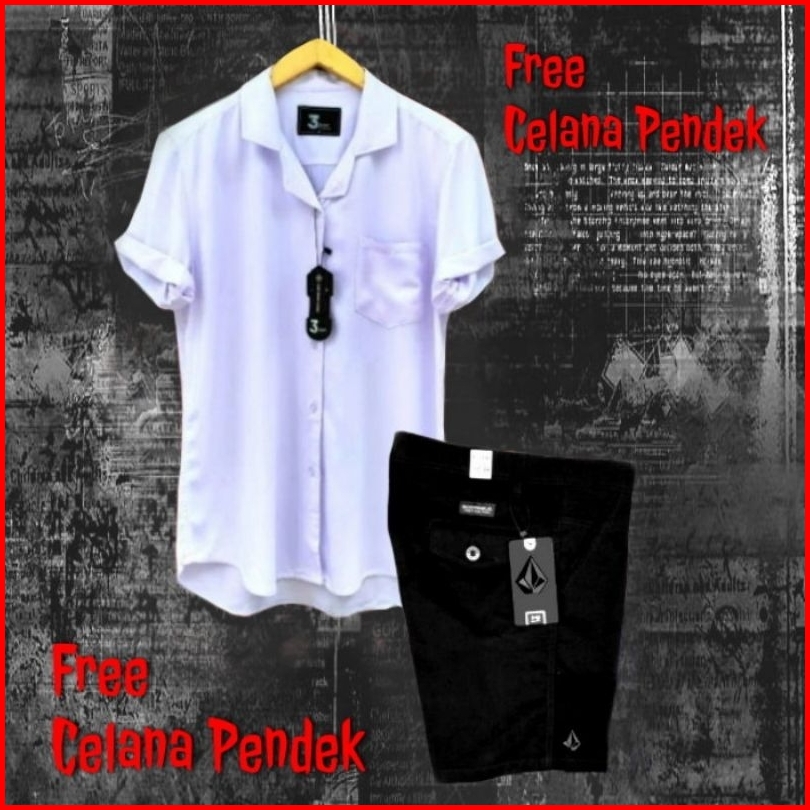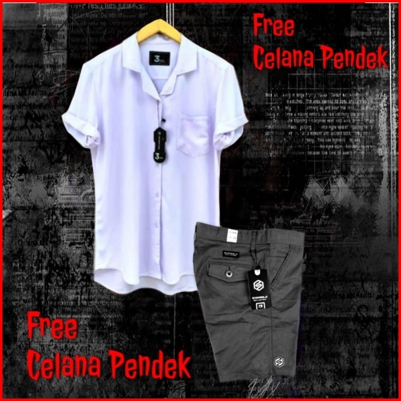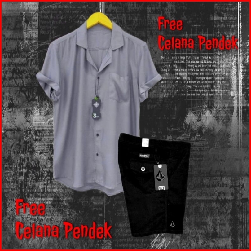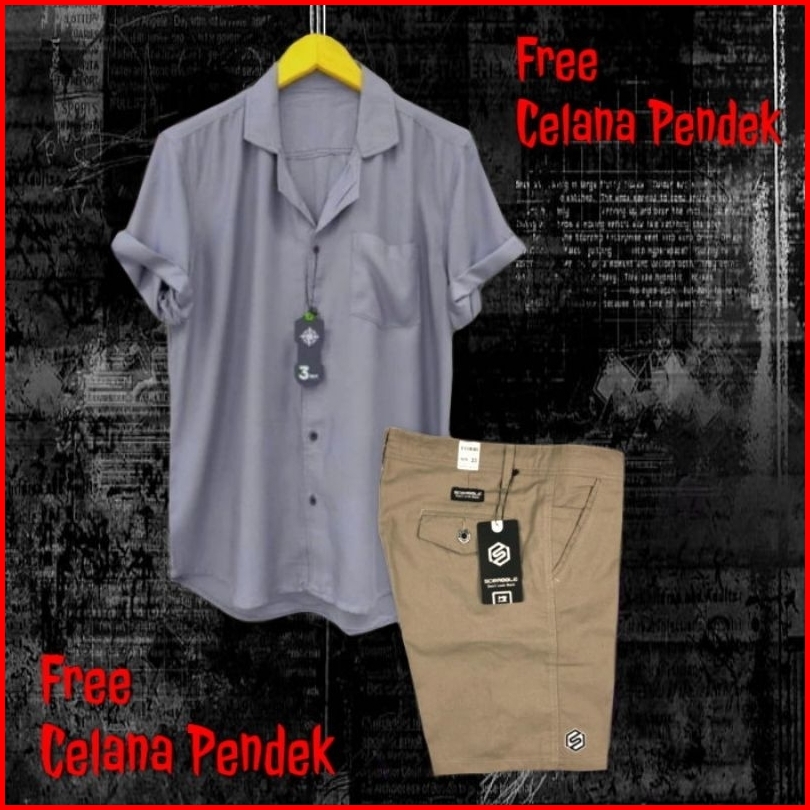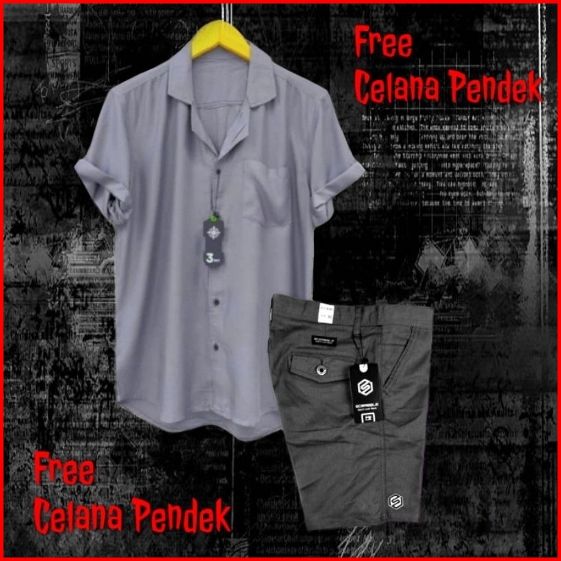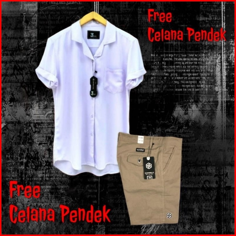 Paket Hemat Setelan Pria Dewasa Terkini Kemeja Pria Polos Lengan Pendek Celana Pendek Pria Dewasa Quality Premium