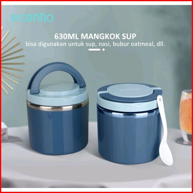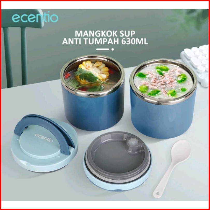 Ecentio Termos Sup 630ml Tempat Sup Tahan Panas Stainless Steel Mangkok Sup Anti Tumpah Ecentio Stainless