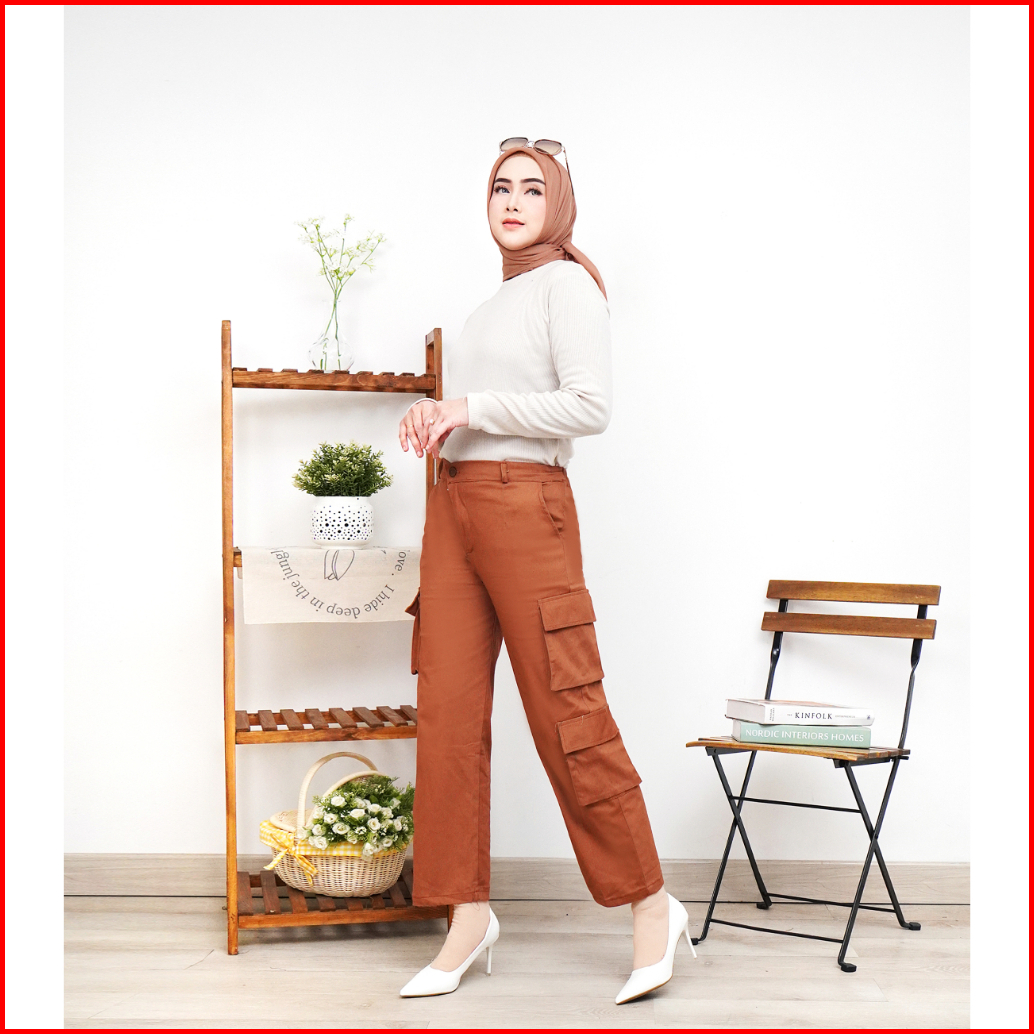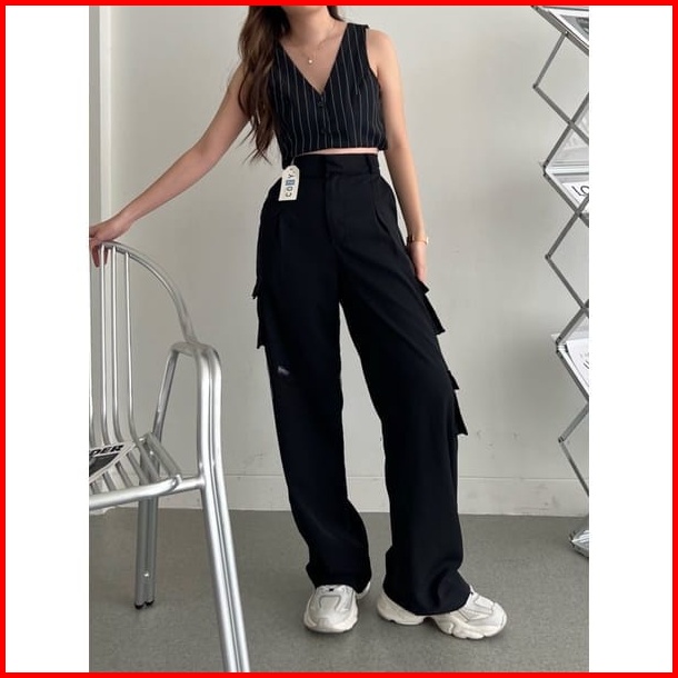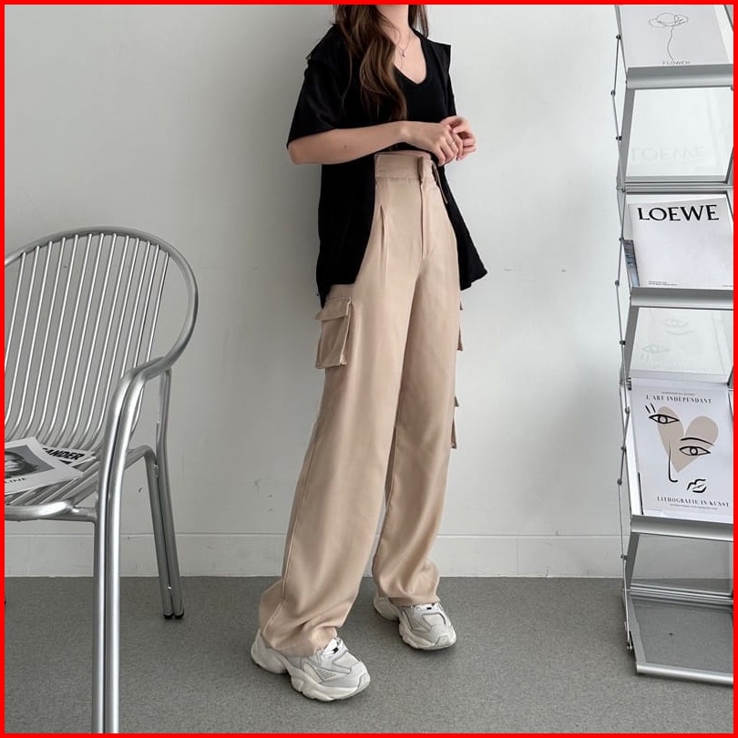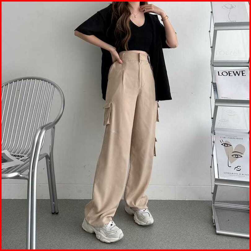 Msb 371 Bonnie Cargo Pants - Highwaist Loose Cargo - Celana Kargo Wanita - Baggy Pants