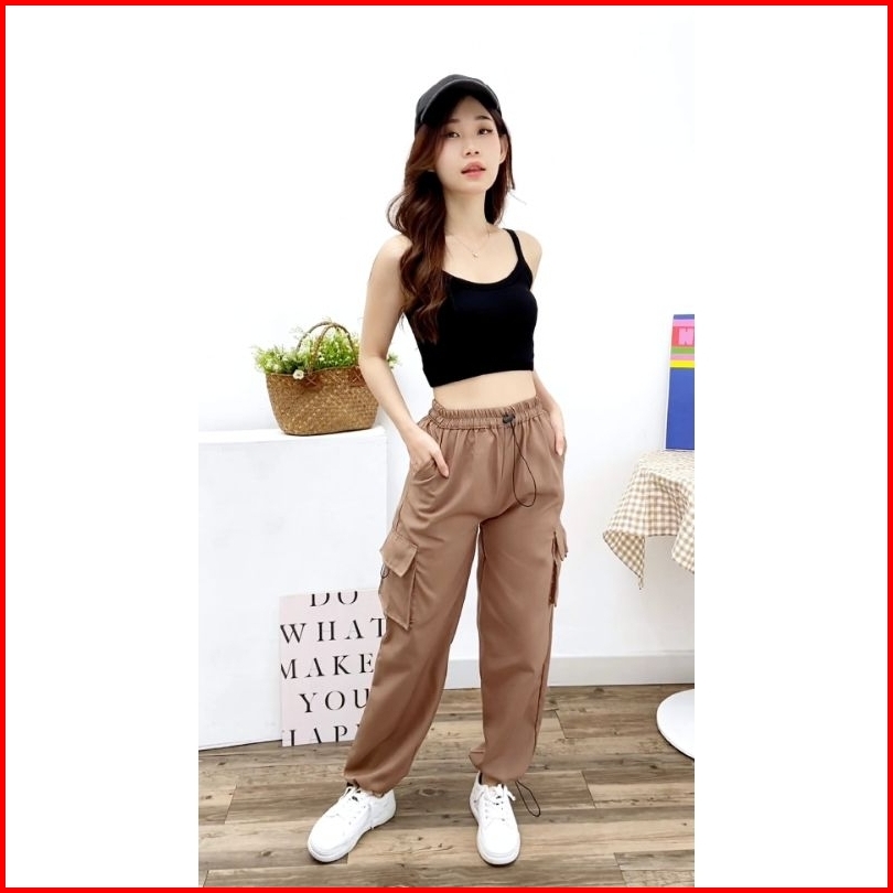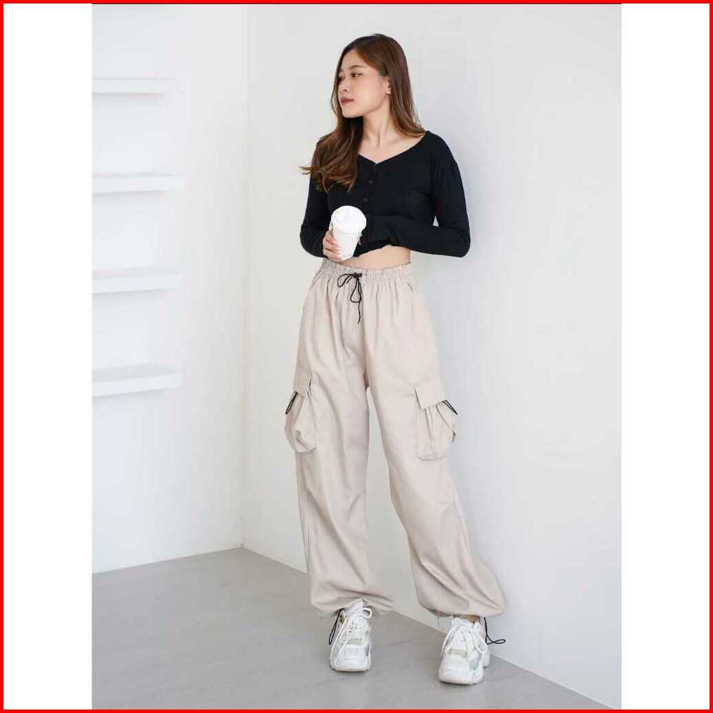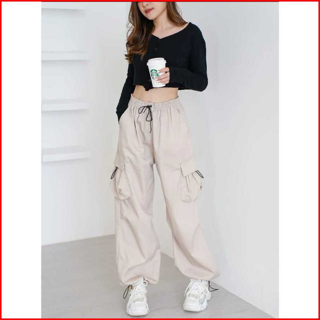 Msb 371 Kiya Cargo - Cargo Pants Wanita Harajuku Highwaist Loose - Celana Kargo Wanita Korea Style Terbaru