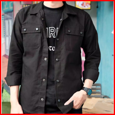 Kemeja Pria Wanita Lengan Panjang Casual Hitam Abu Tua Navy Maroon Coklat Army Caramel Khaki Cream