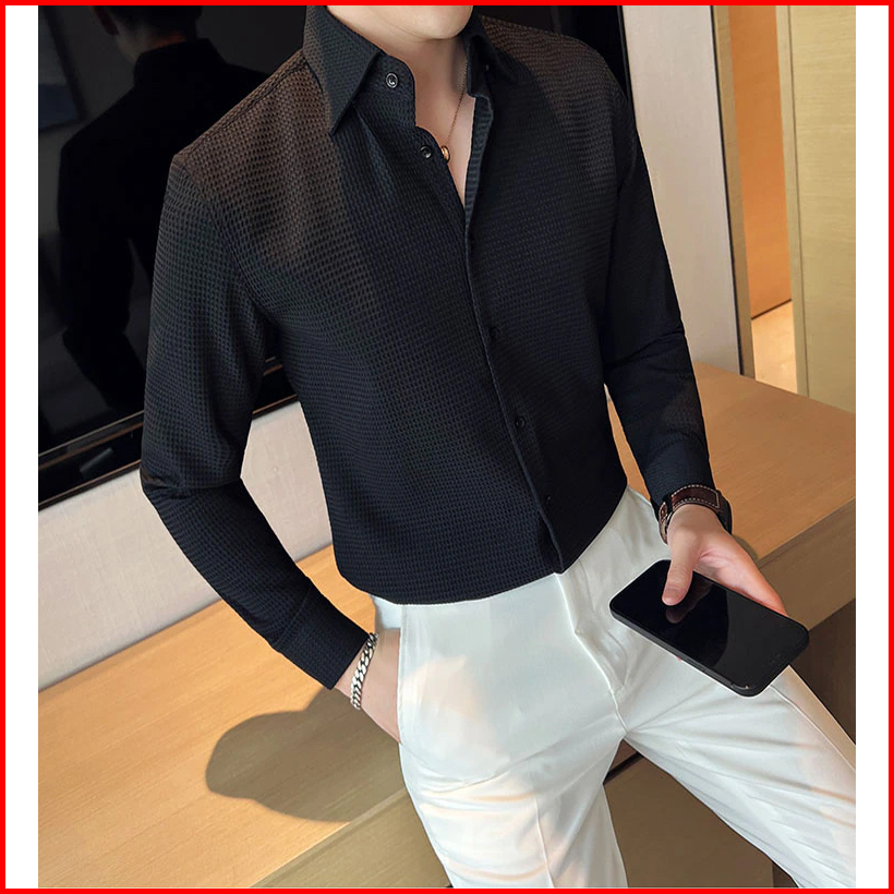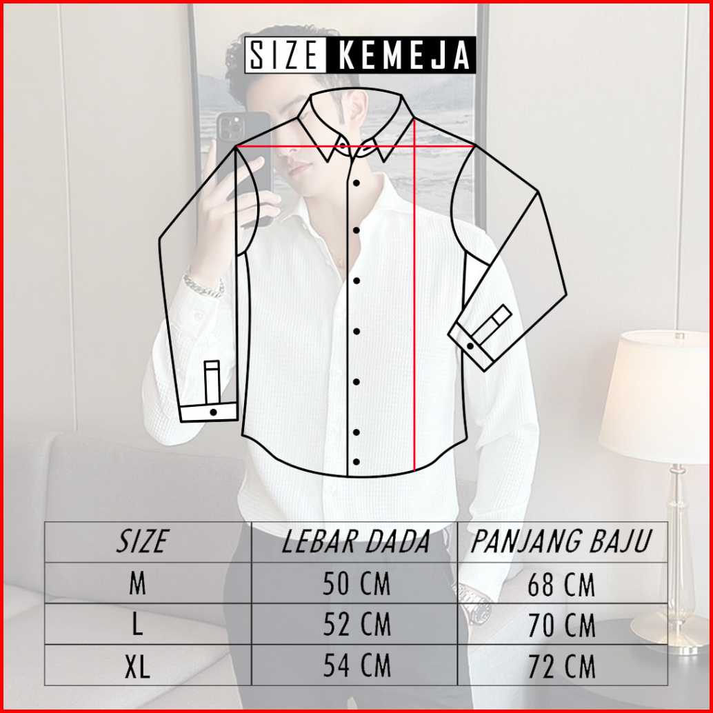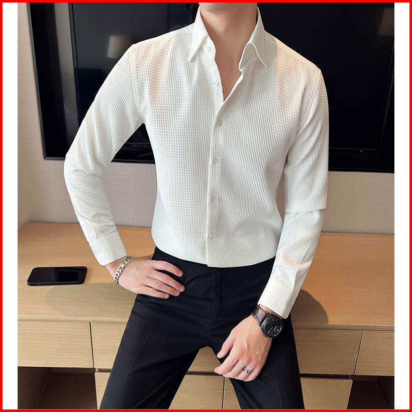 Lorafit - Kemeja Pria Waffle Knit Shirt Polos Putih Lengan Panjang Slimfit Motif Uniqlo Terbaru 2023