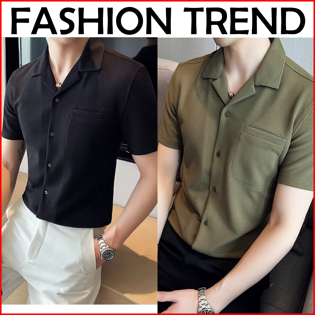 Kemeja Casual Pria Polos Tekstur Waffle Kualitas Import Korean Style Lengan Pendek Kemeja Kantor