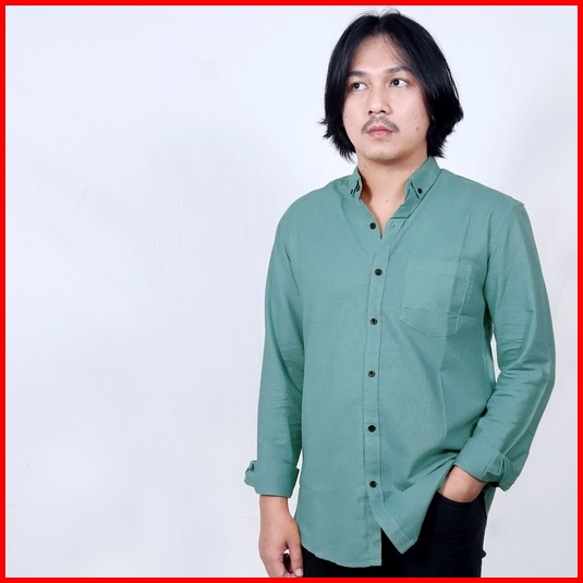 Kemeja Pria Polos Lengan Panjang Biru Mint Hitam Maroon Navy Coklat Putih Abu M-xl Slim Fit