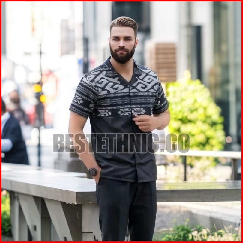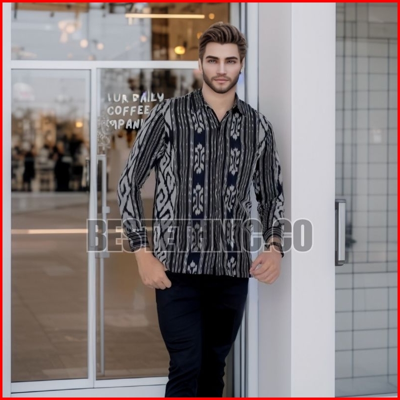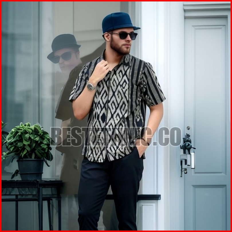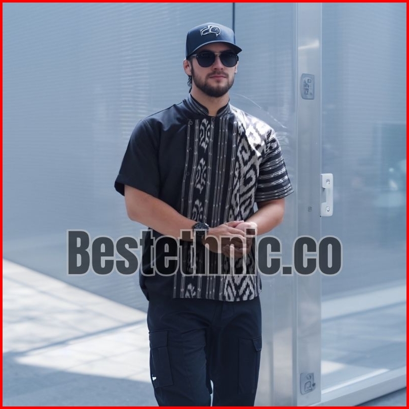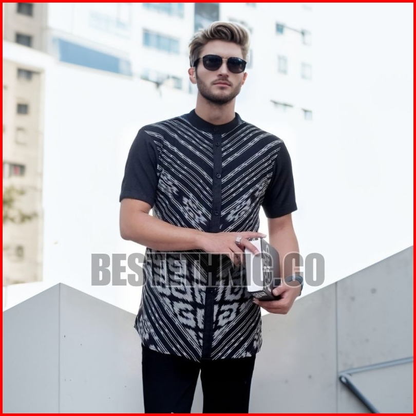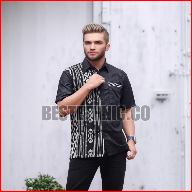 Baju Atasan Kemeja Hem Batik Tenun Pria Cowok Lengan Pendek Dan Panjang Varian Warna Hitam