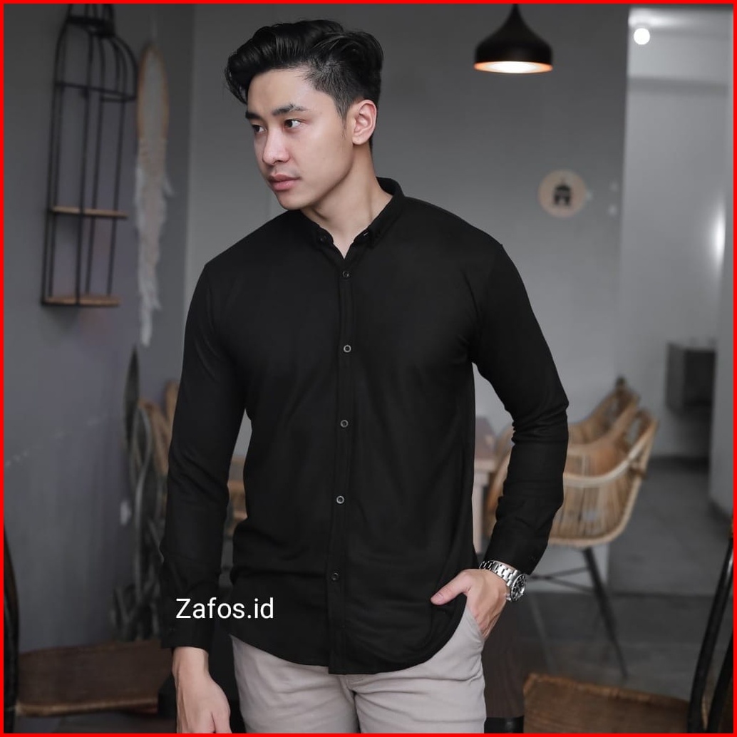 Kemeja Formal Pria Polos Lengan Panjang Bahan Pique Premium Warna Abu