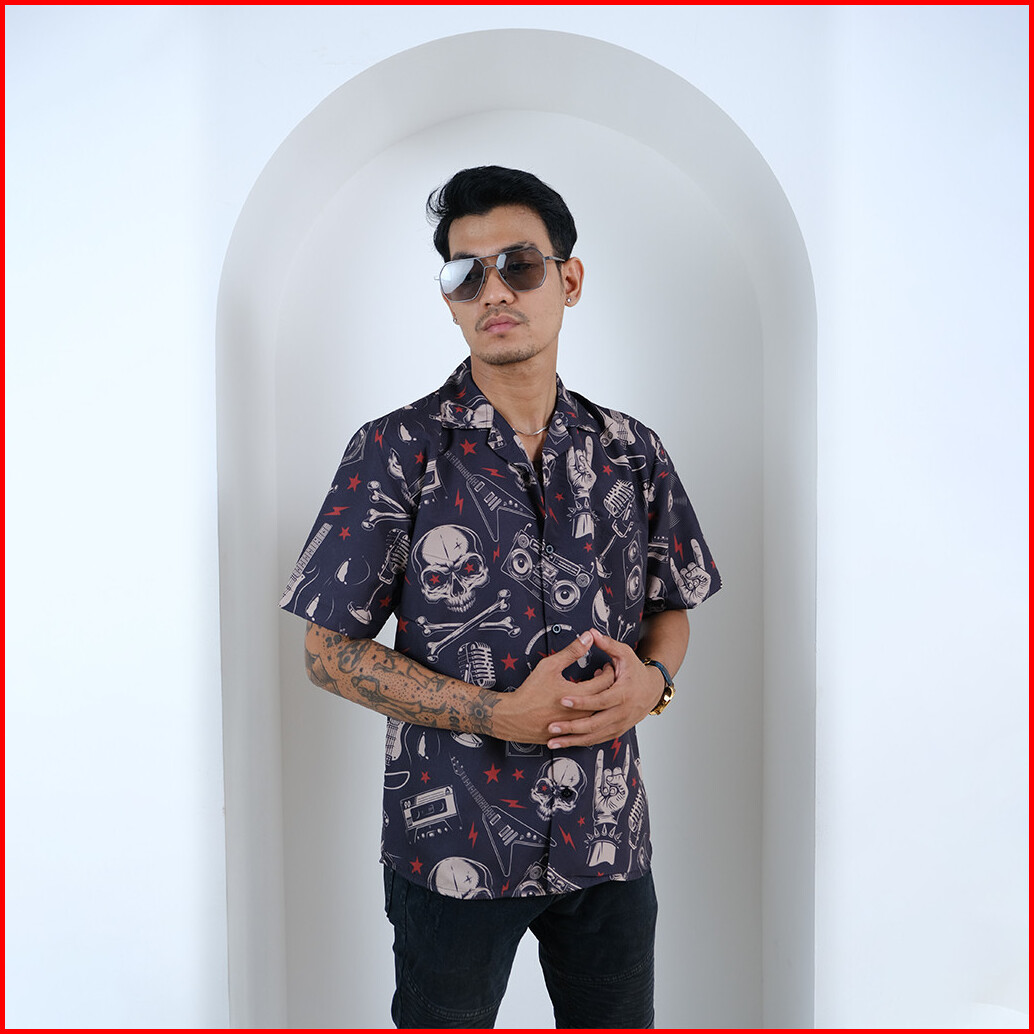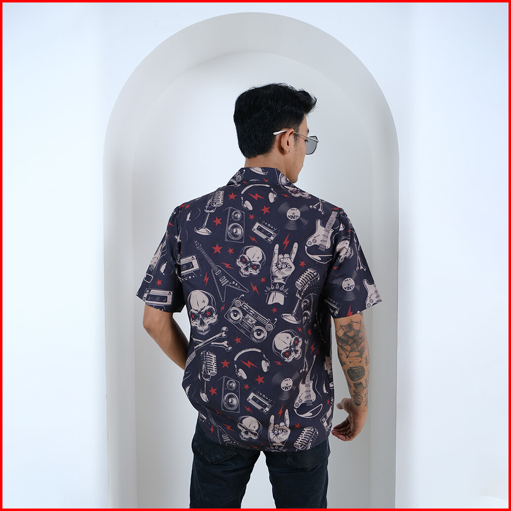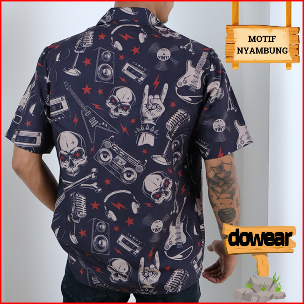 Dowear Baju Kemeja Santai Jumbo Pria Wanita Gambar Printing Hawaiian Lengan Pendek Music Metal 223