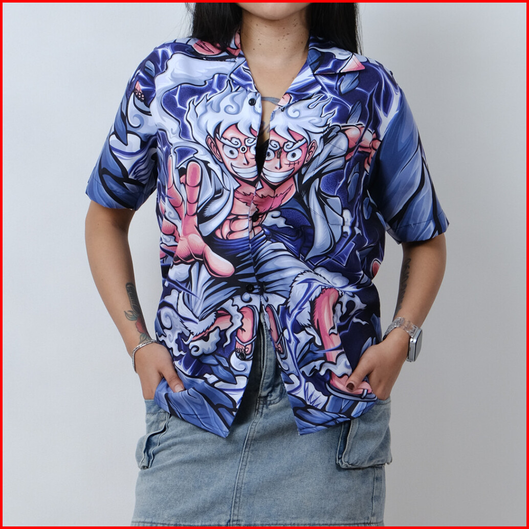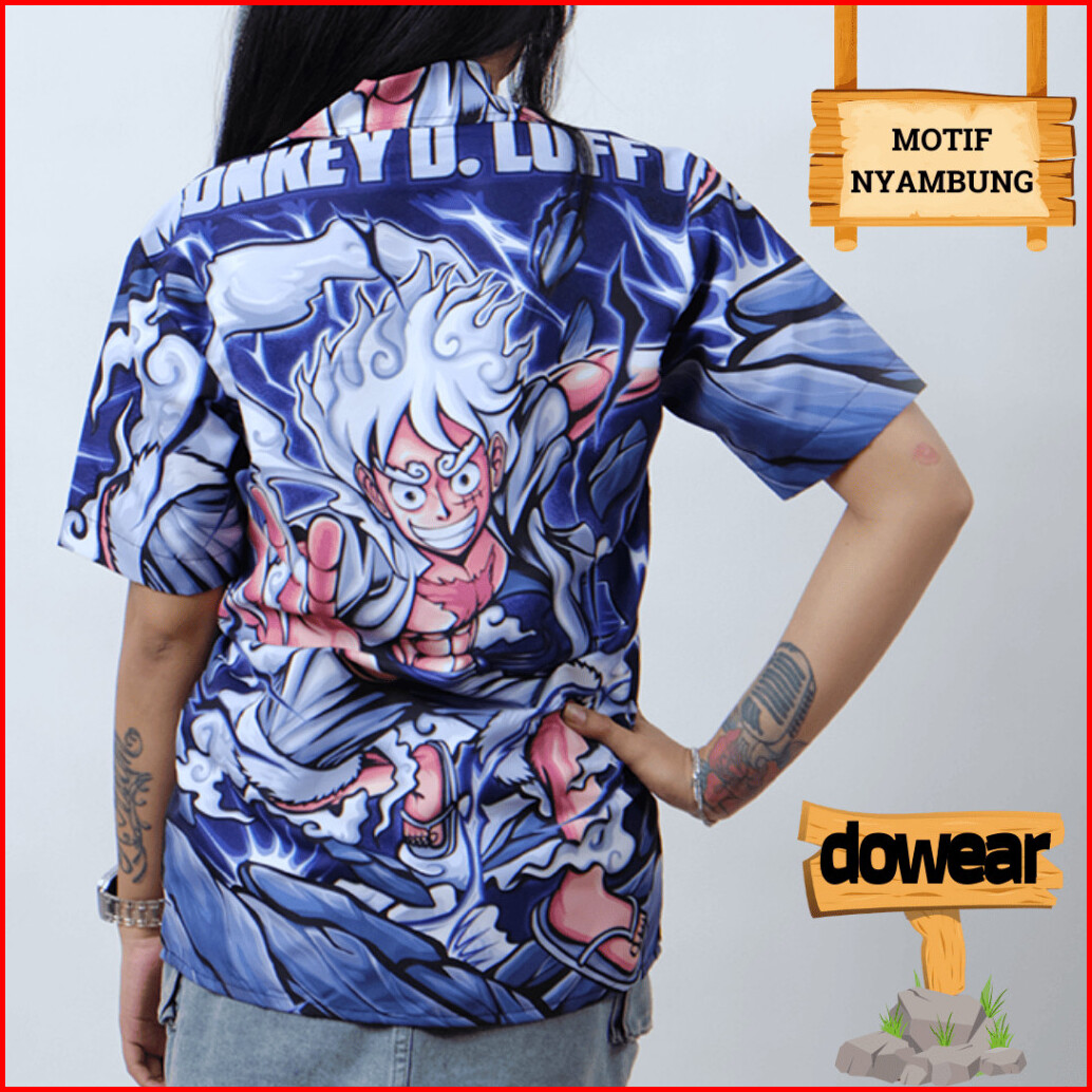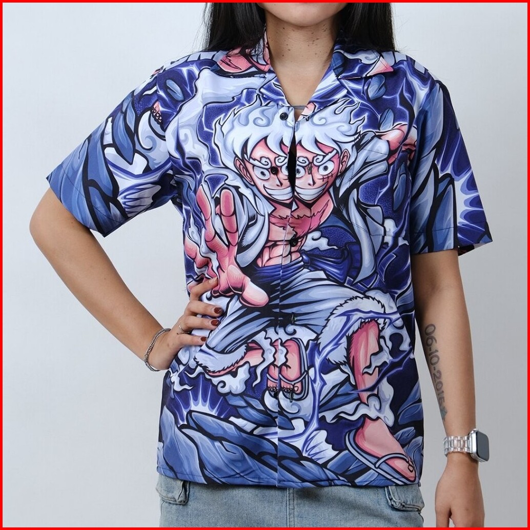 Dowear Baju Kemeja Motif Laki Laki Perempuan Full Print Printing Kemeja Luffy Gear 5 One Piece 038