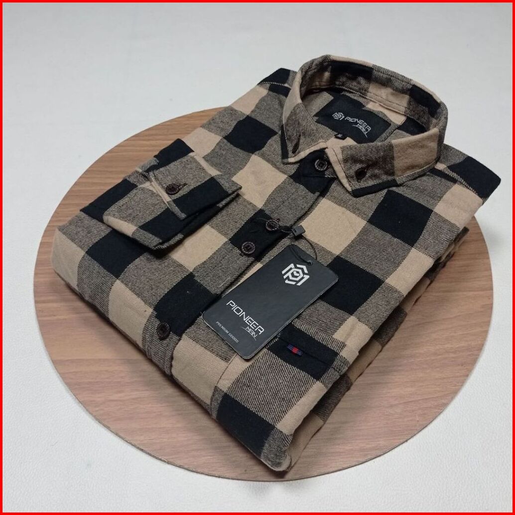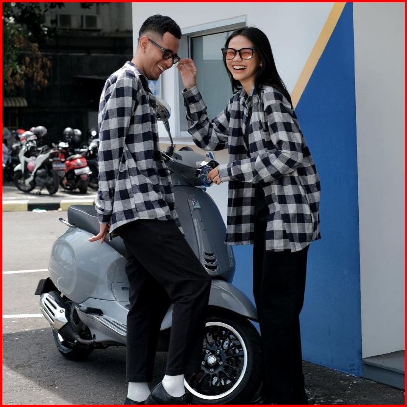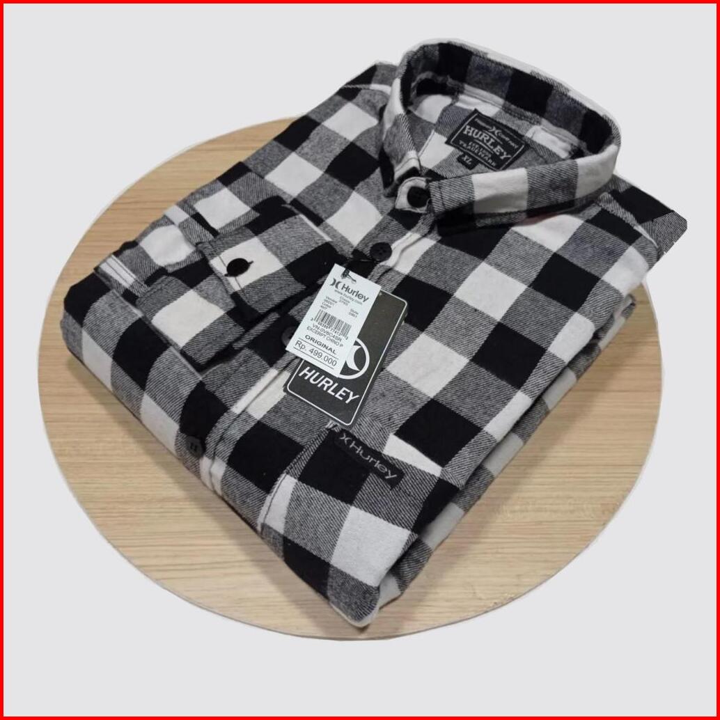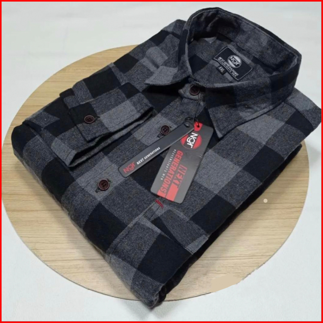 Ayz20- Kemeja Flanel Pria Wanita Lengan Panjang Premium Motif Abu Garis Hitam