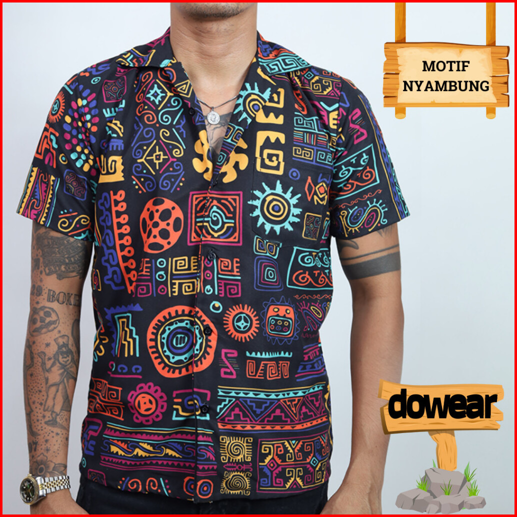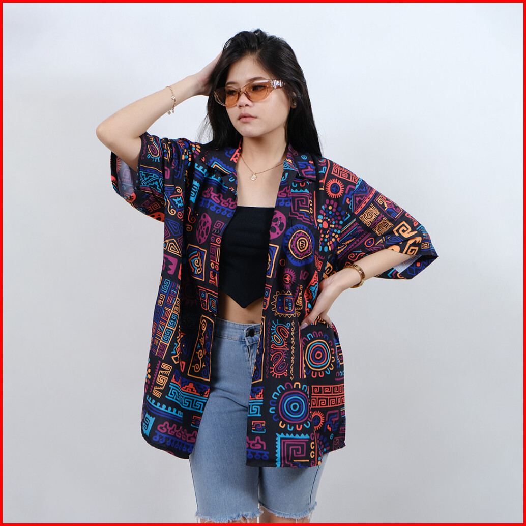 Dowear Baju Kemeja Motif Cewe Cowo Motif Full Printing Oversize Pria Outdoor Abstrak Hitam 001