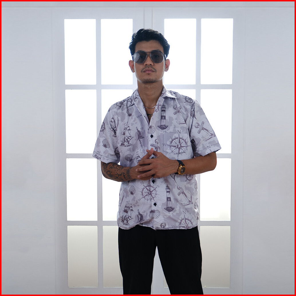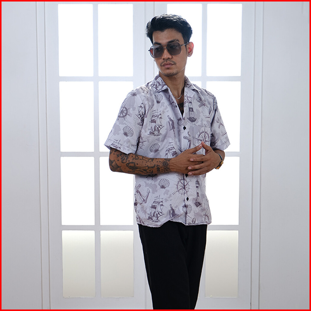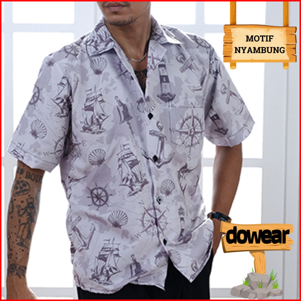 Dowear Baju Kemeja Motif Kekinian Cowok Cewek Bali Pantai Surfing Hawai Jumbo Vintage Grey Ship 130