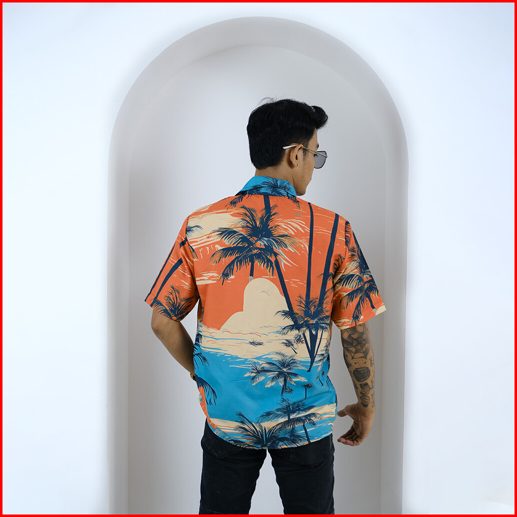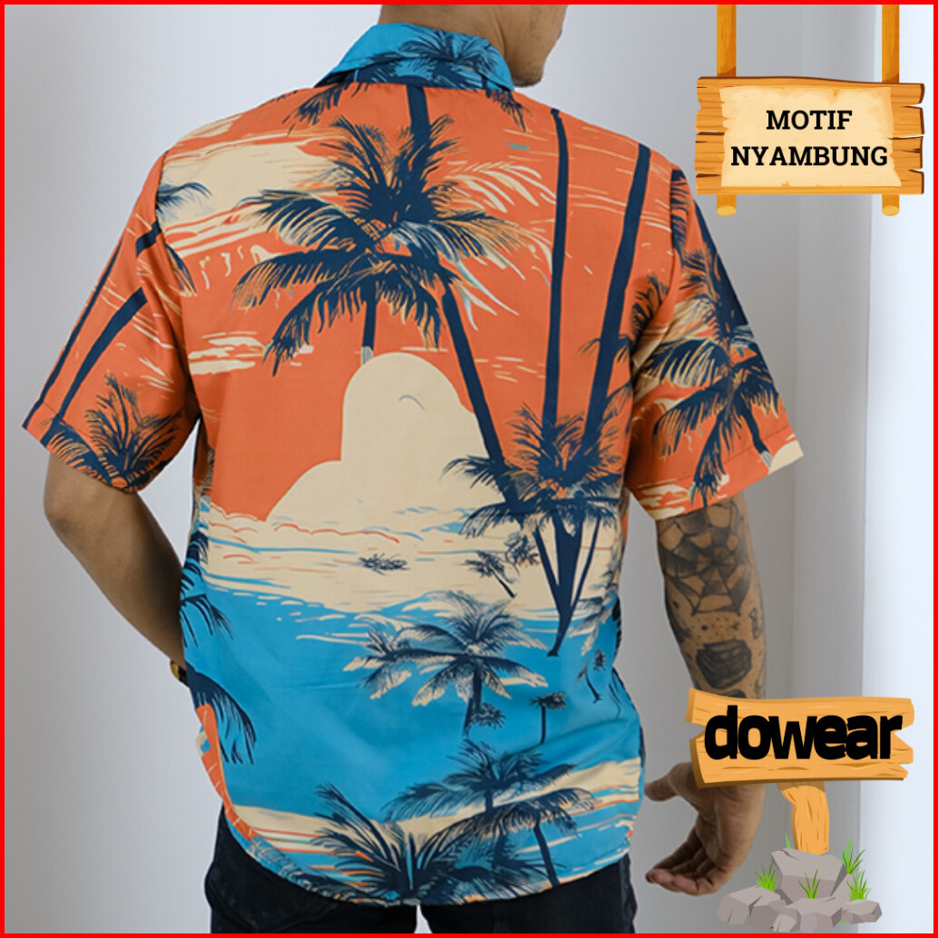 Dowear Baju Shirt Kemeja Pria Wanita Motif Printing Pantai Lengan Pendek Premium Pantai Sunset 071