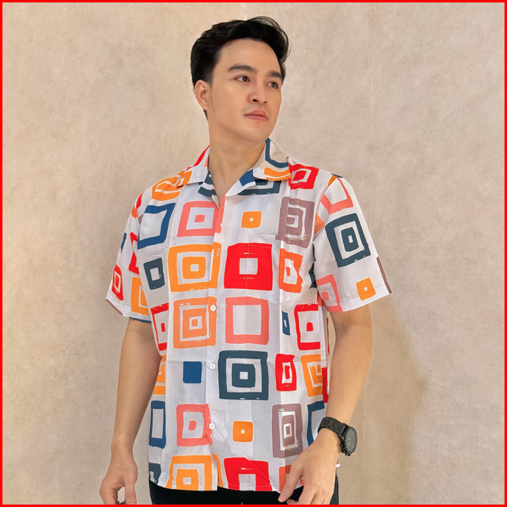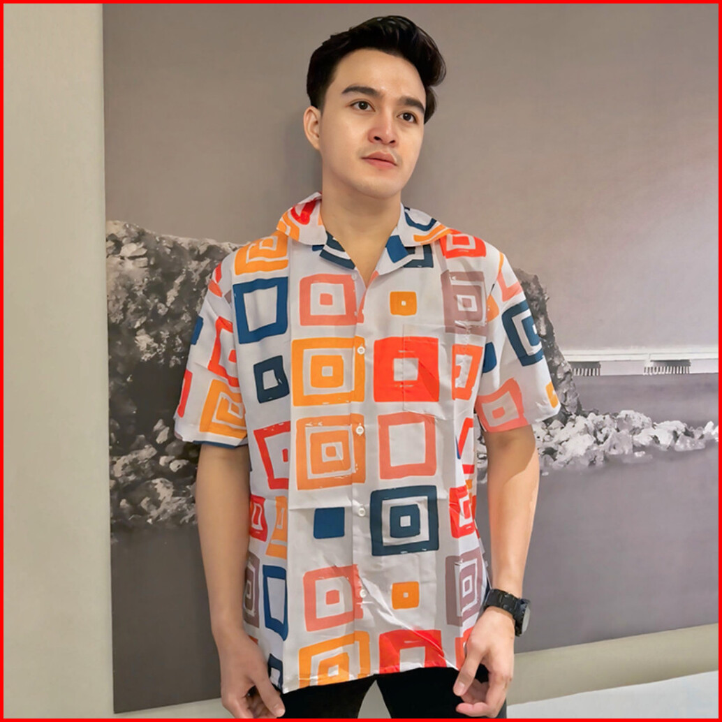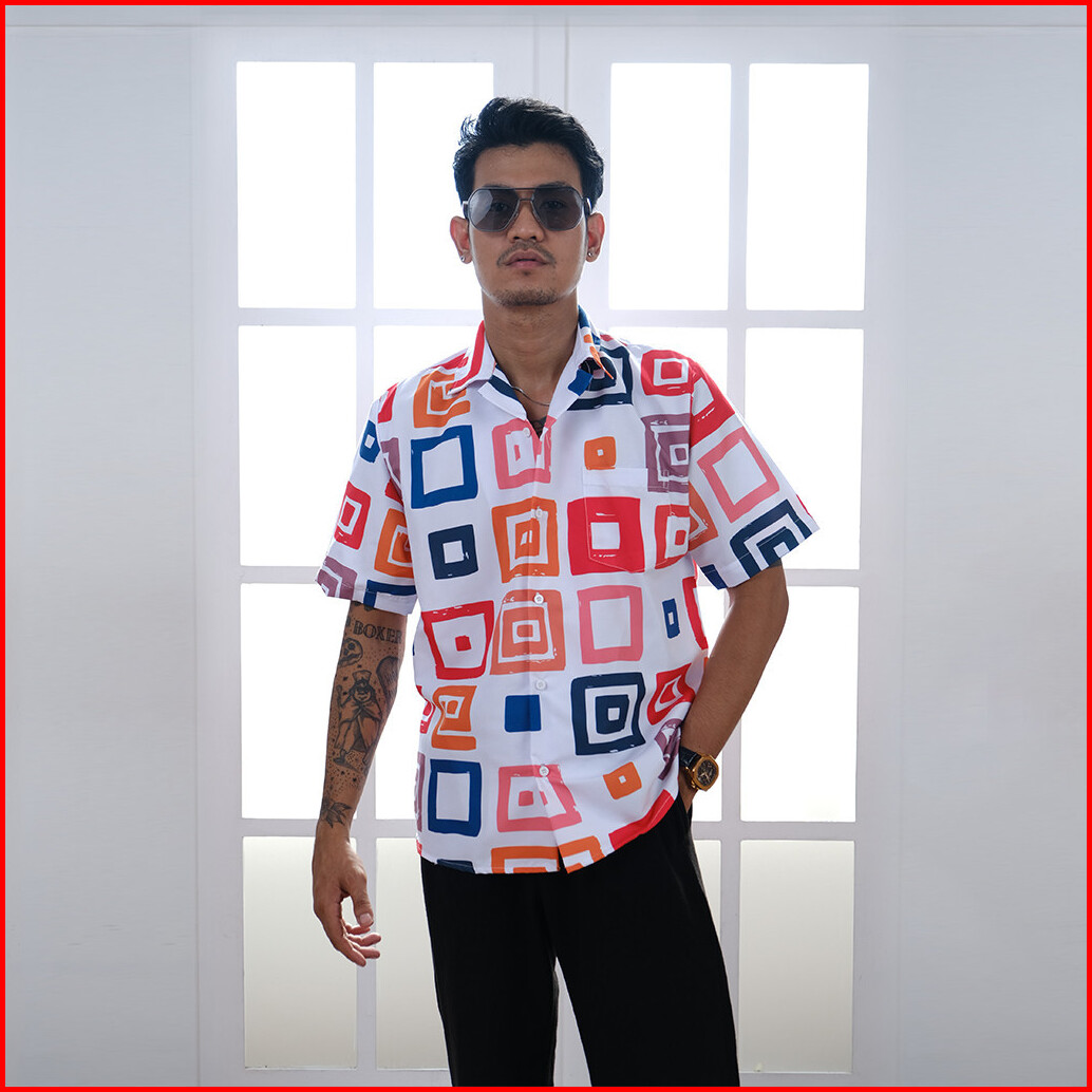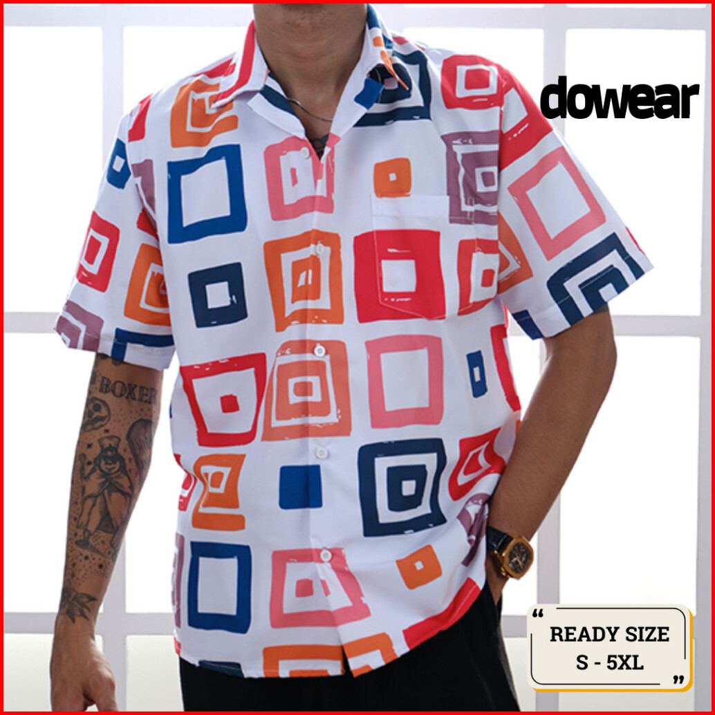 Dowear Baju Kemeja Motif Laki Laki Perempuan Full Print Printing Kemeja Vintage Abstrak Kotak 002