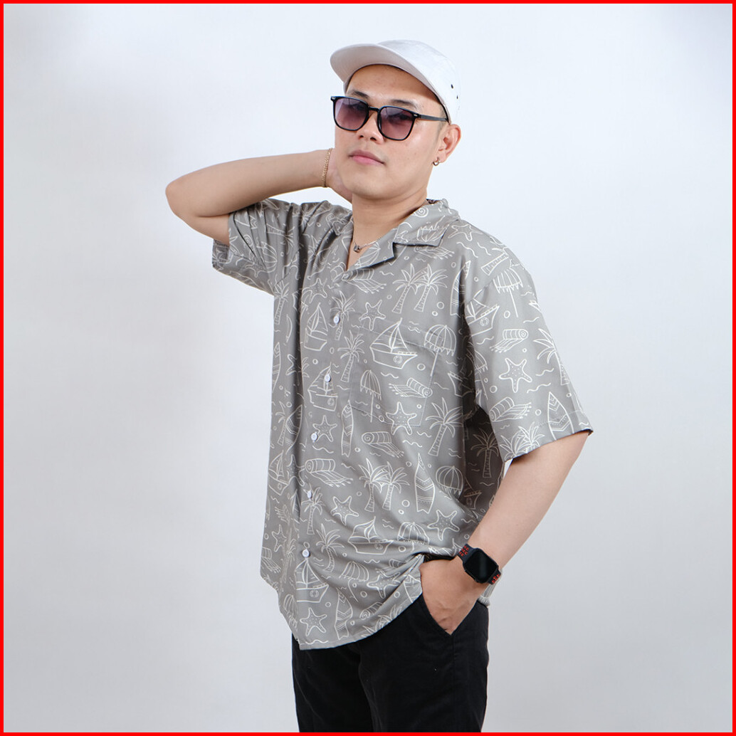 Dowear Baju Shirt Kemeja Pria Wanita Motif Printing Pantai Lengan Pendek Premium Pantai Sage 192
