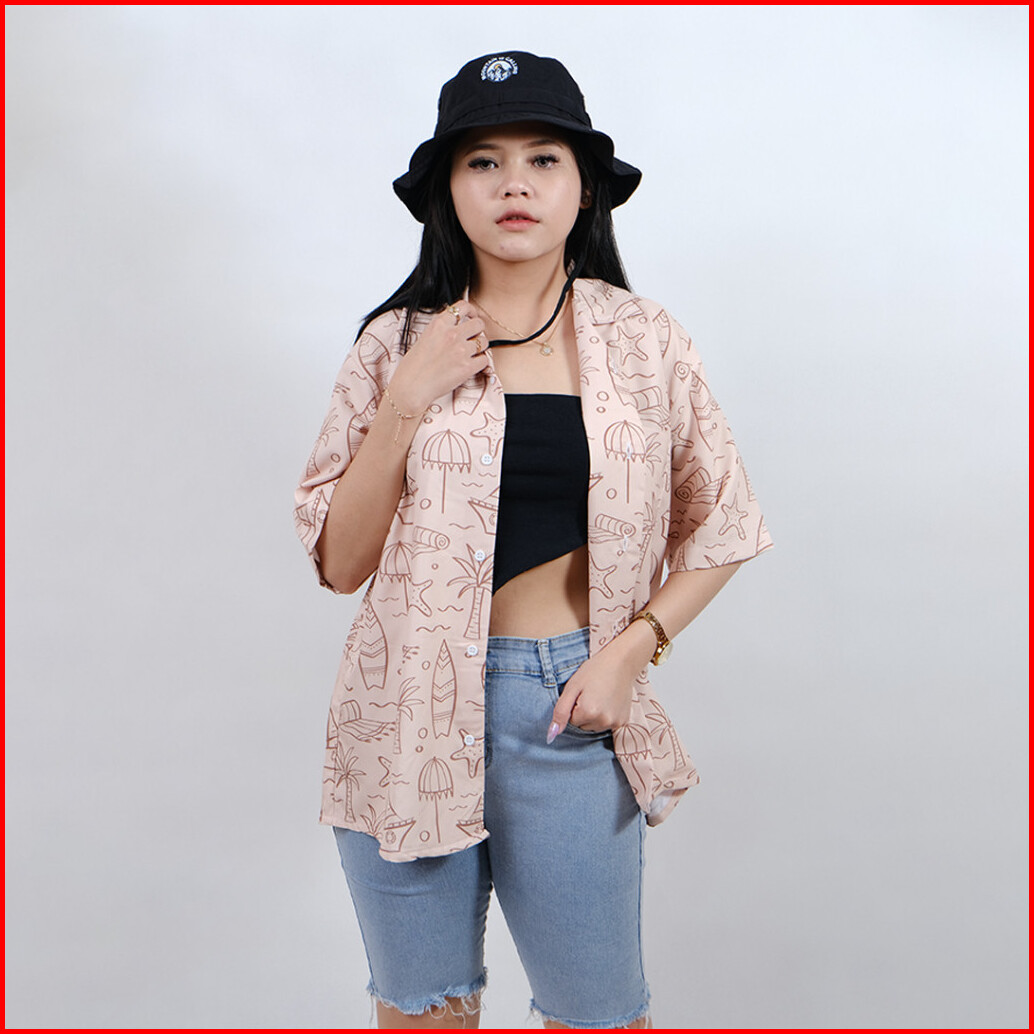 Dowear Baju Kemeja Motif Kekinian Cowok Cewek Bali Pantai Surfing Hawai Jumbo Pantai Coklat 191
