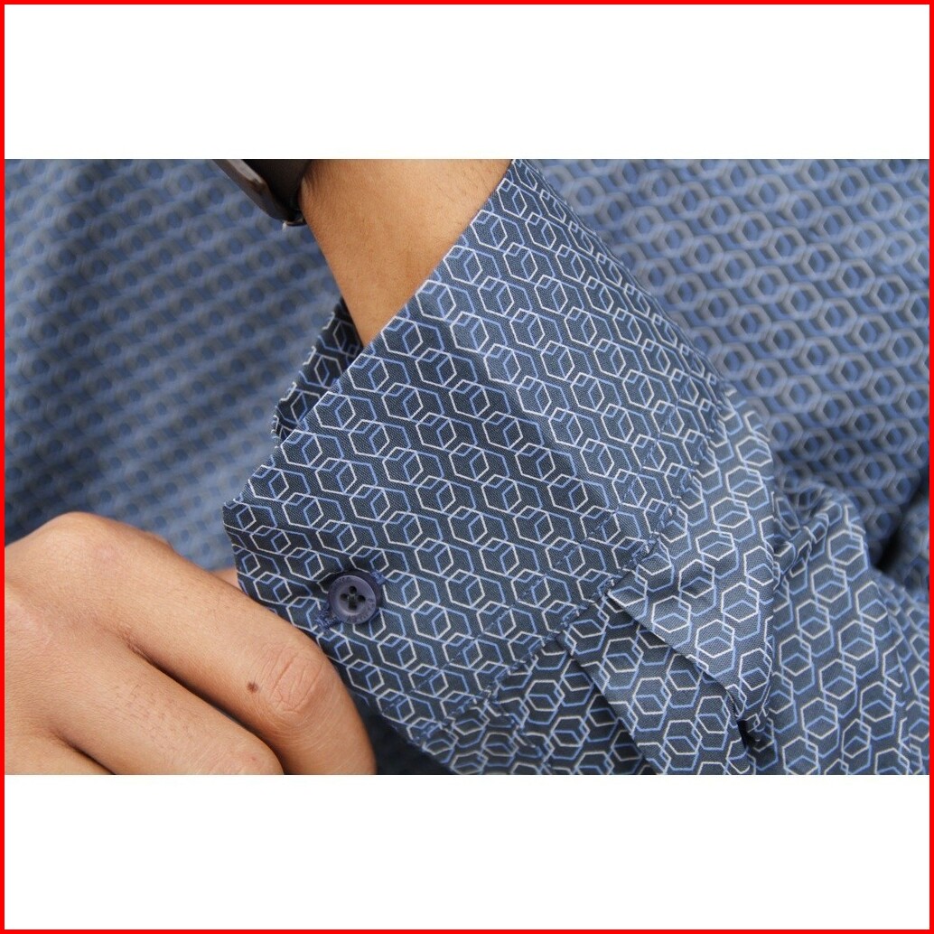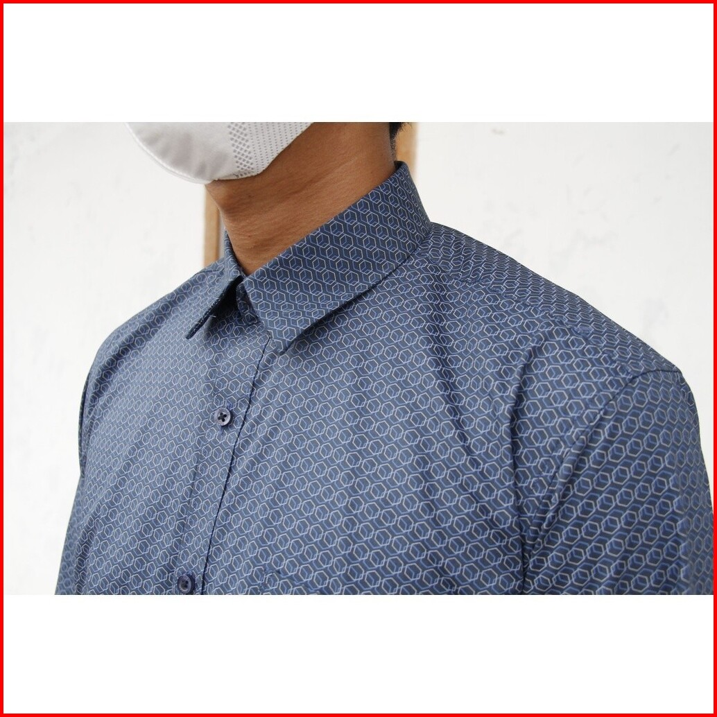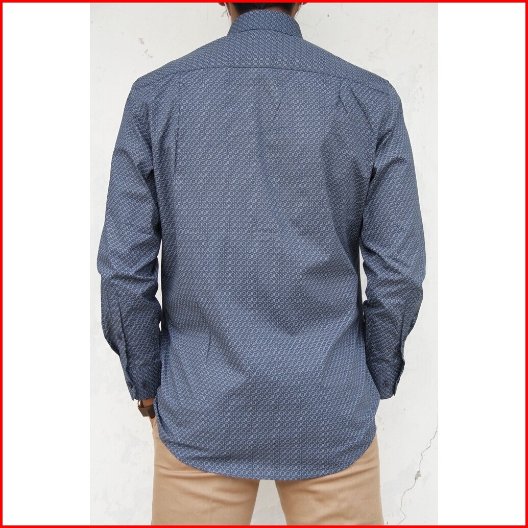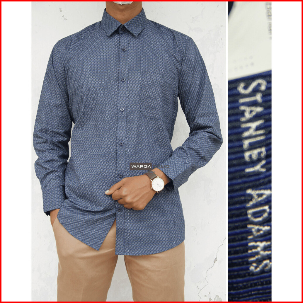 Kemeja Pria Lengan Panjang Formal Reguler Fit Stanley Adams Dasar Hitam Motif Biru 07 Hem Pria