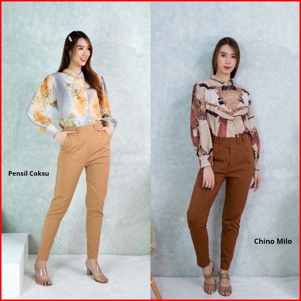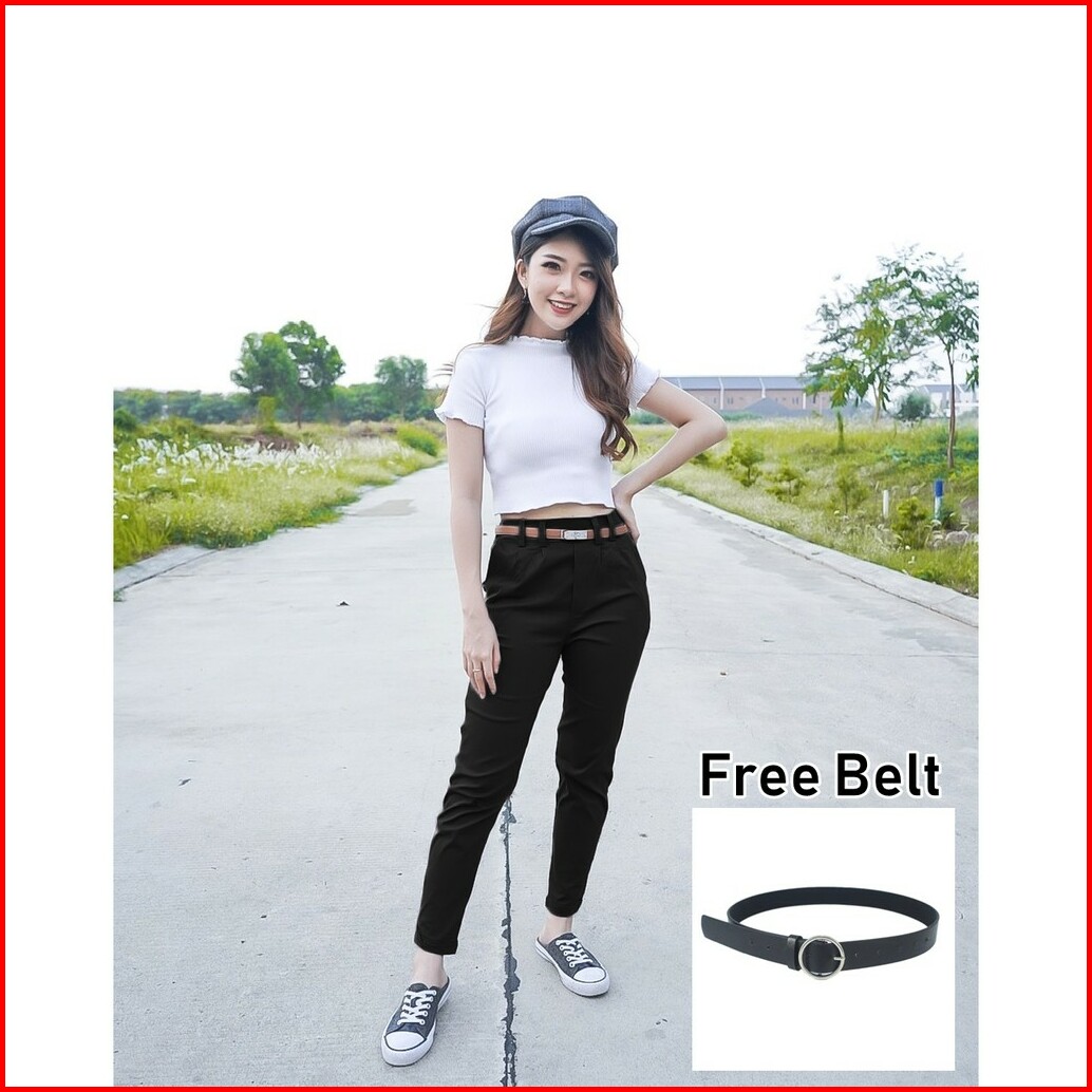 Chamele - Free Belt Ori Beckie Celana Kantor Chino Pensil Wanita Pants Premium Melar 2246 47 48