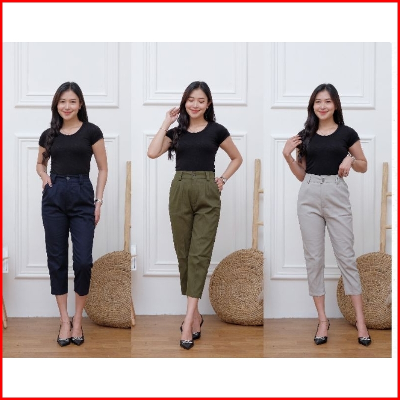 Celana Kerja Wanita Haigwaist 7 9 Katun Twill Strech