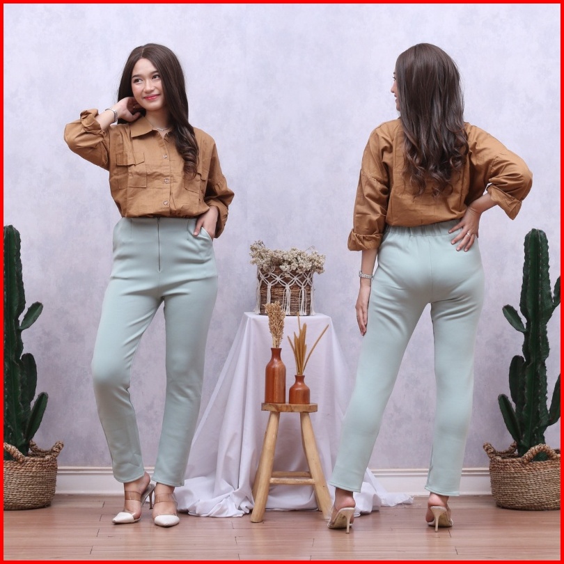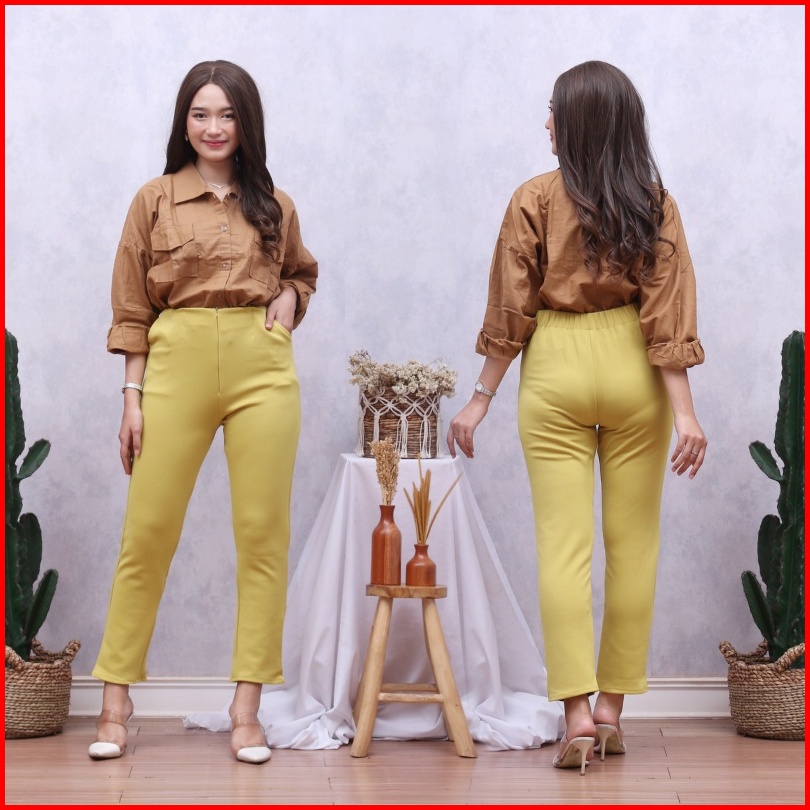 Celana Wanita Highwaist Monic Basic Pants Street Anti Kusut Dan Anti Begah Celana Kantor Kerja Wanita Size Standar-super