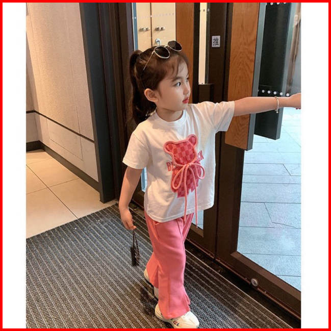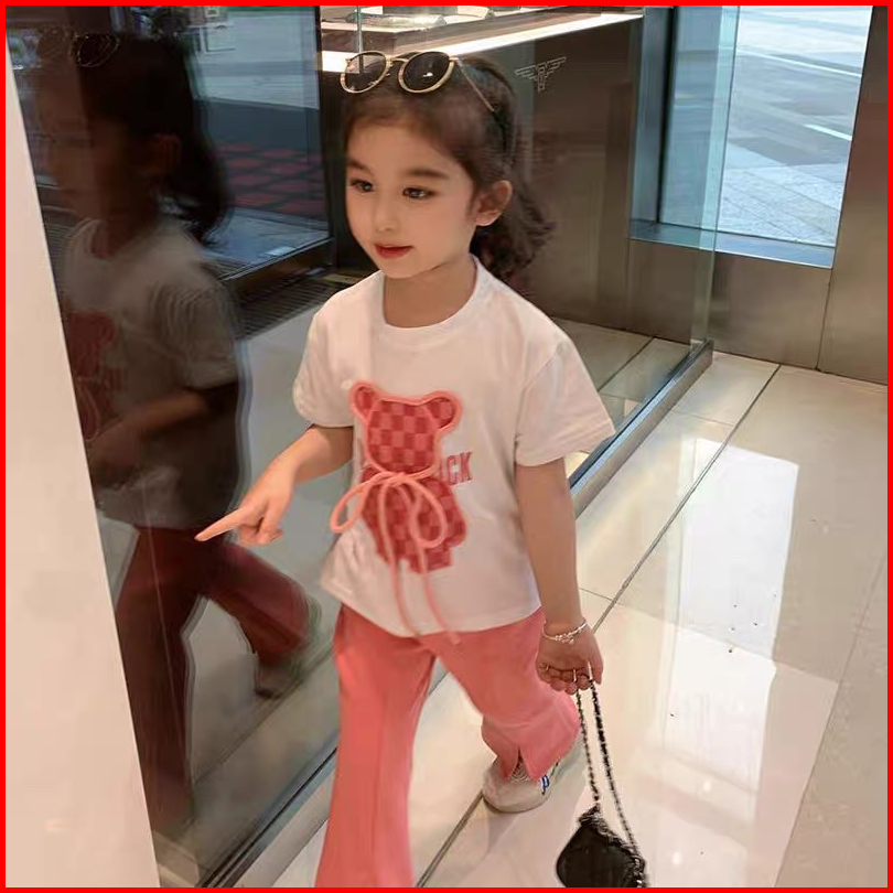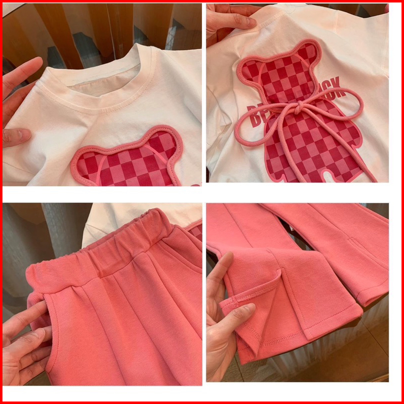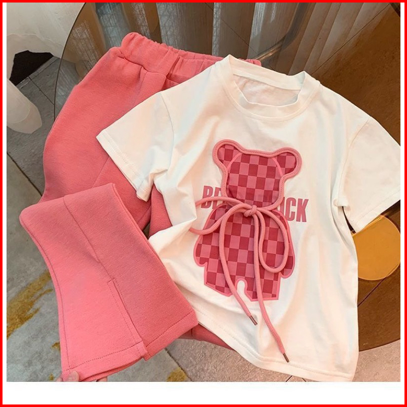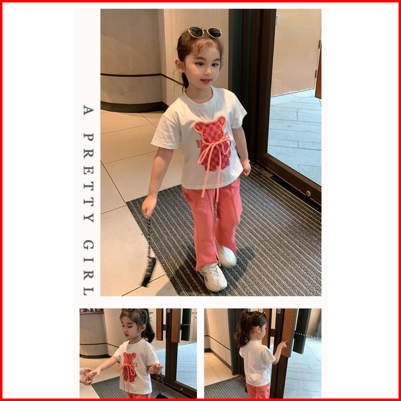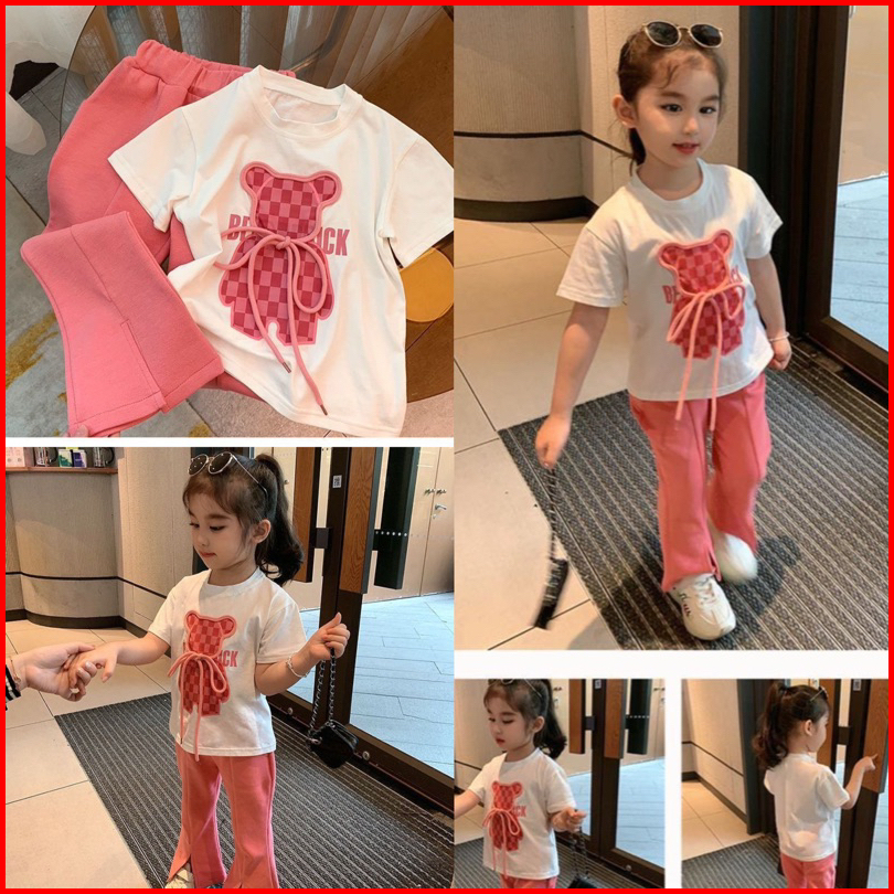 2-10tahun Setelan Bear Pink Cutbray Baju Anak Perempuan Berkualitas