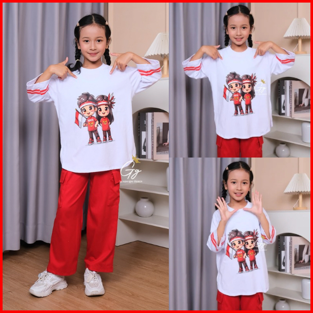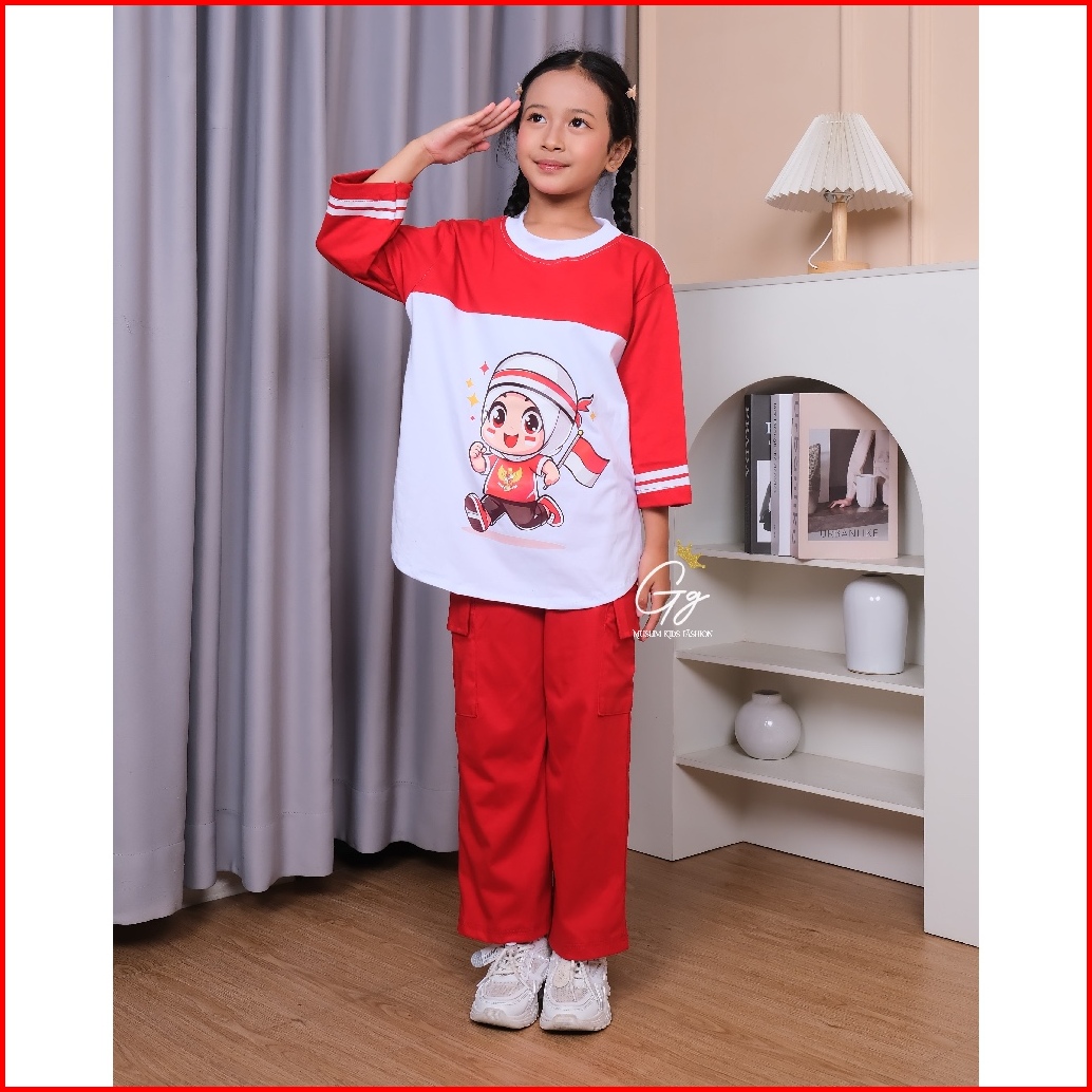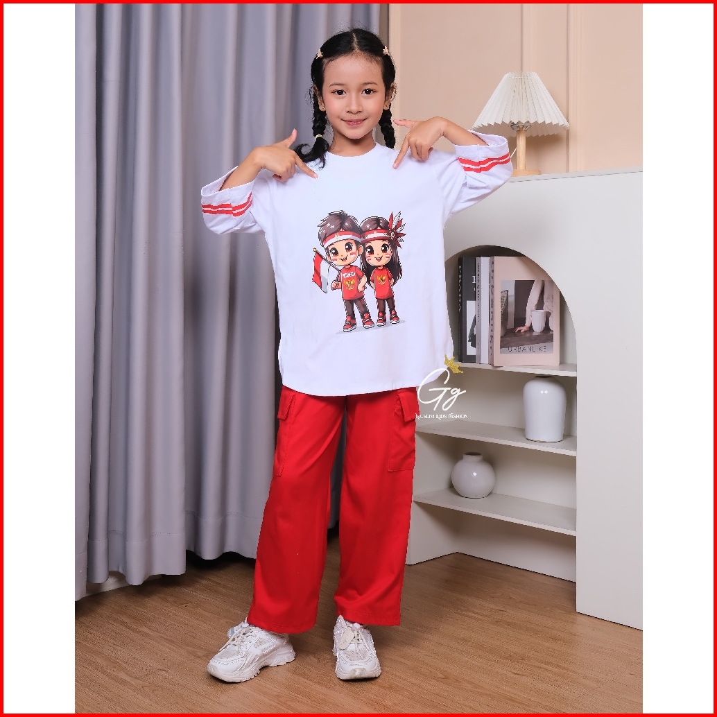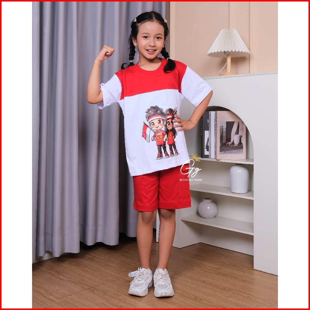 Kaos Anak Motif Kartun Merah Putih 3-12 Tahun Kaos Kemerdekaan Indonesia Kaos Baju Merah Putih Anak Setelan Anak Merah P