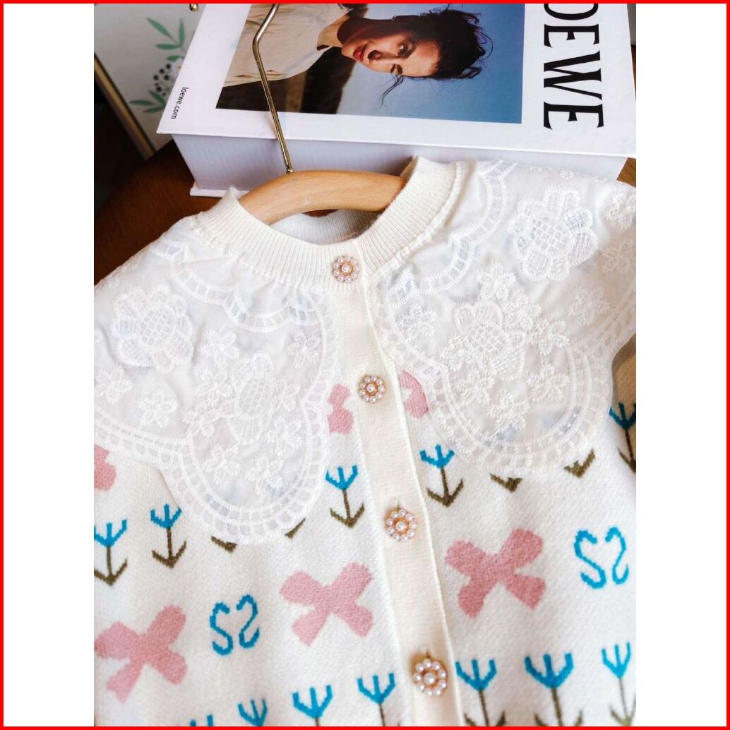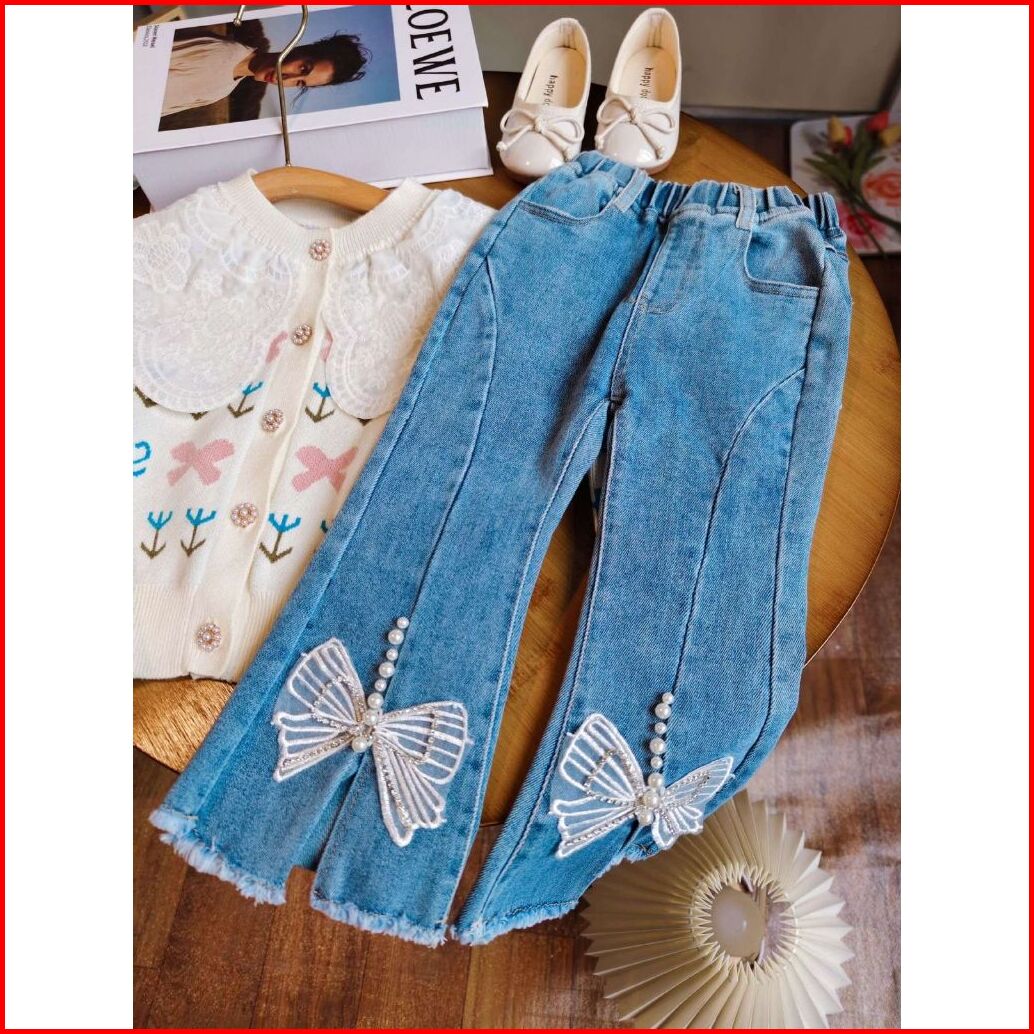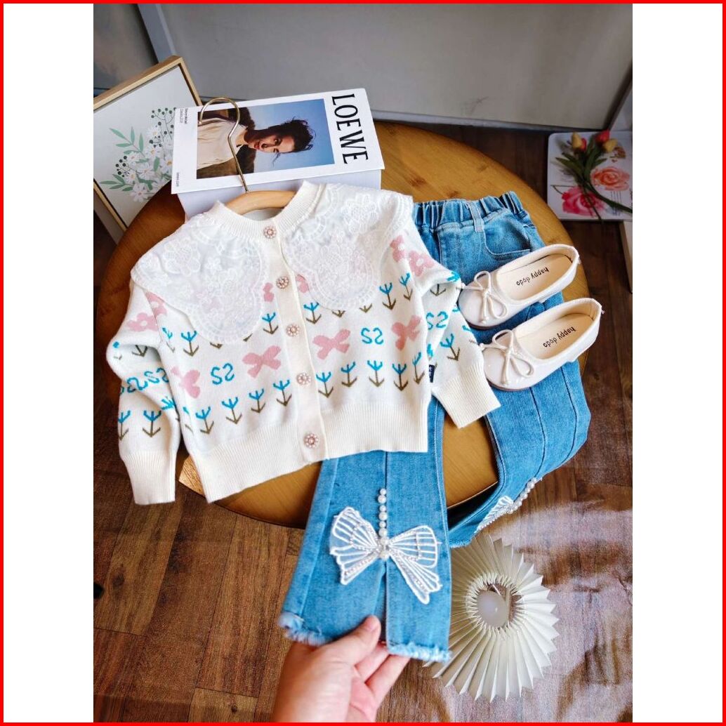 Loli-jkt Bs- 630 Setelan Anak Sweater Kerah Bordir Bunga Celana Jeans Pita Size 100-140