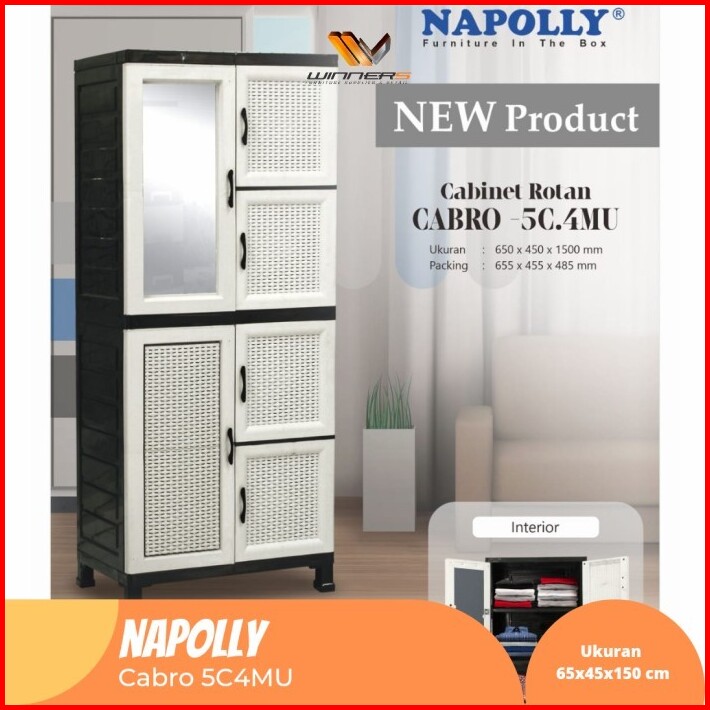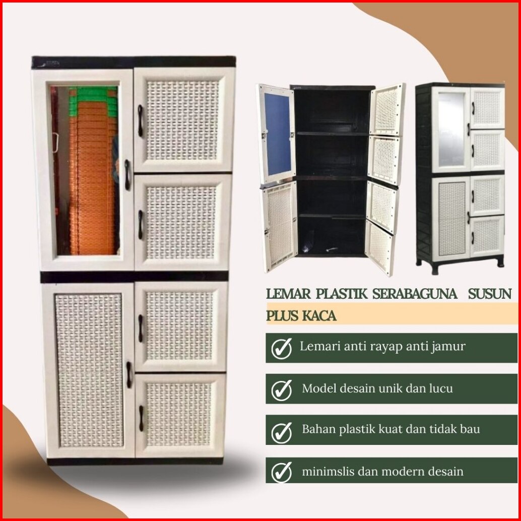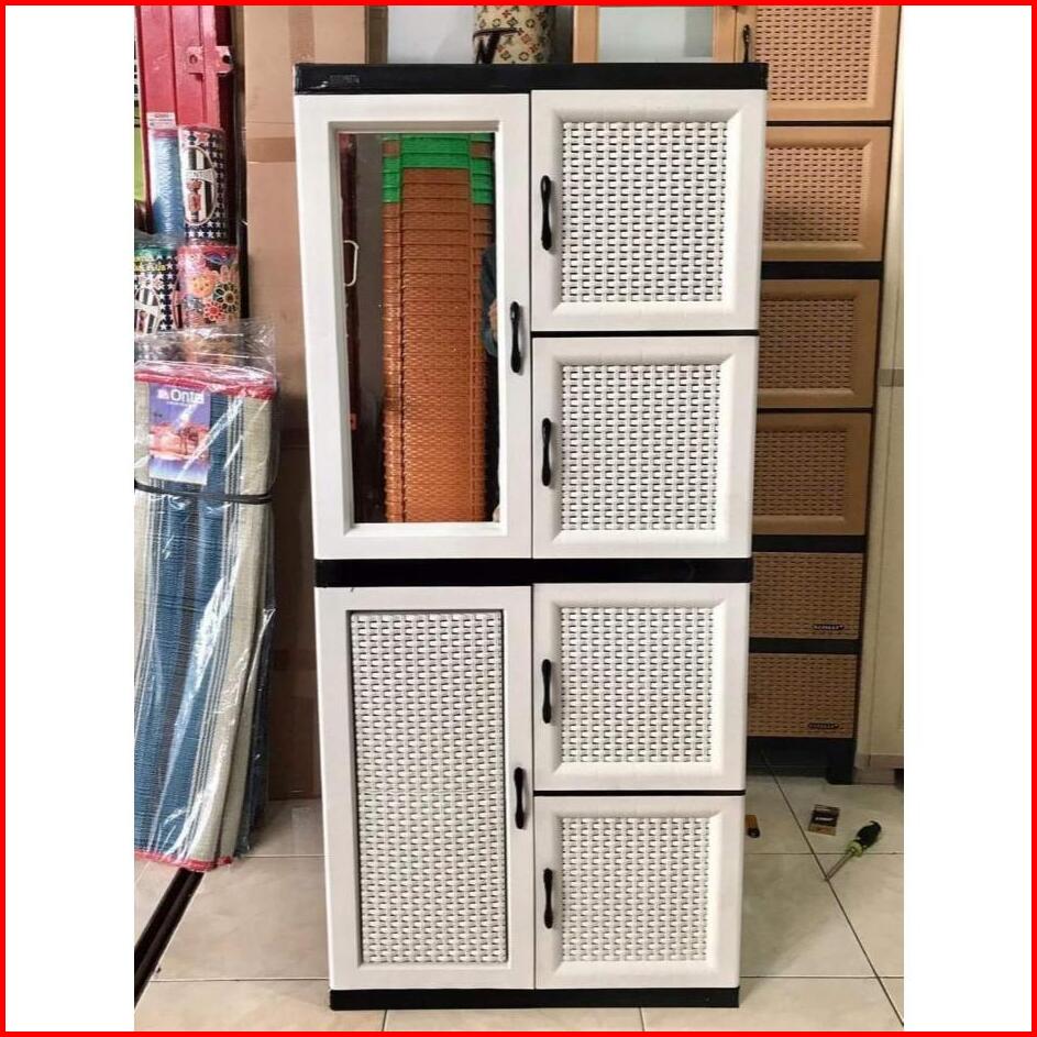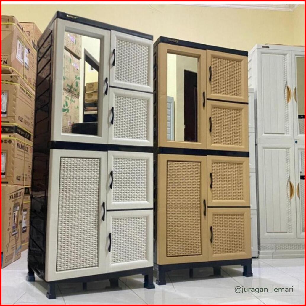 Lemari Plastik 4 Susun Jumbo Merk Napolly Dengan Kaca Kunci I Lemari Sekat Termurah Napolly
