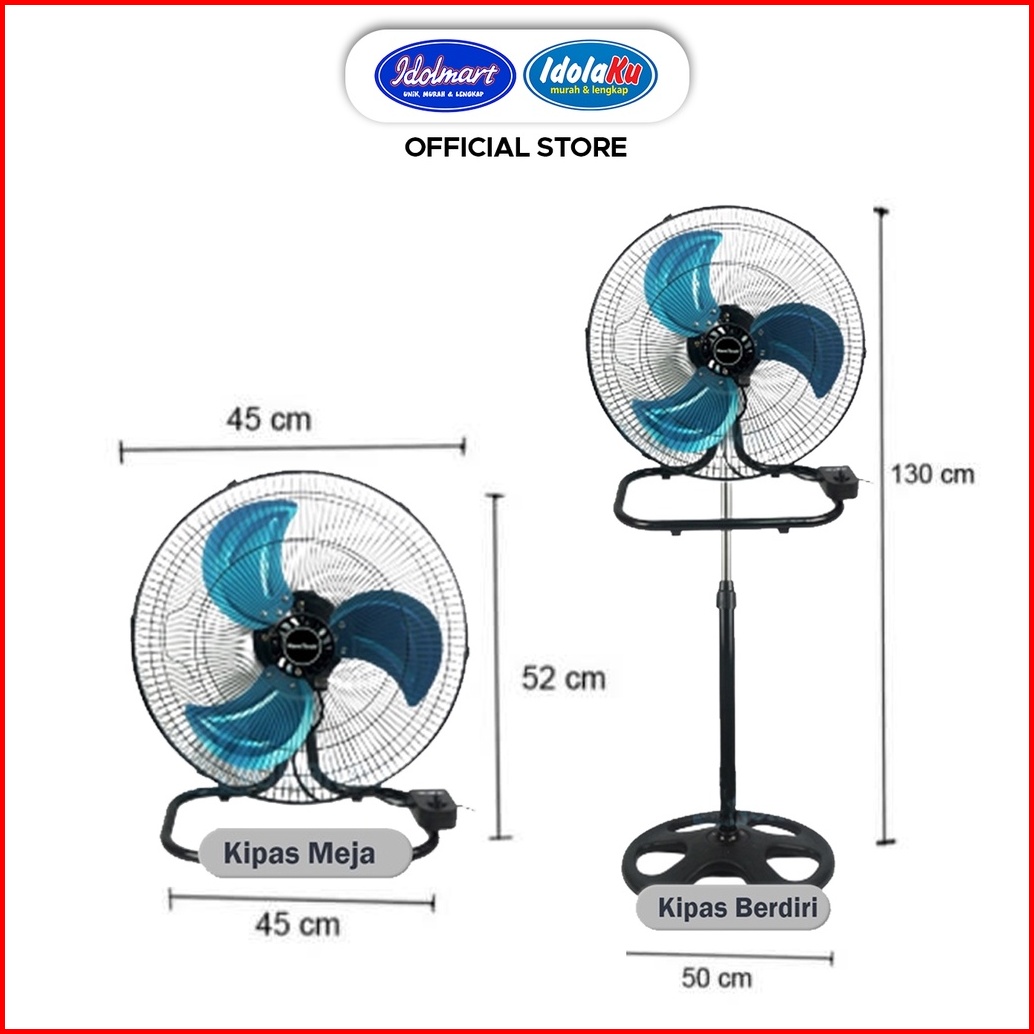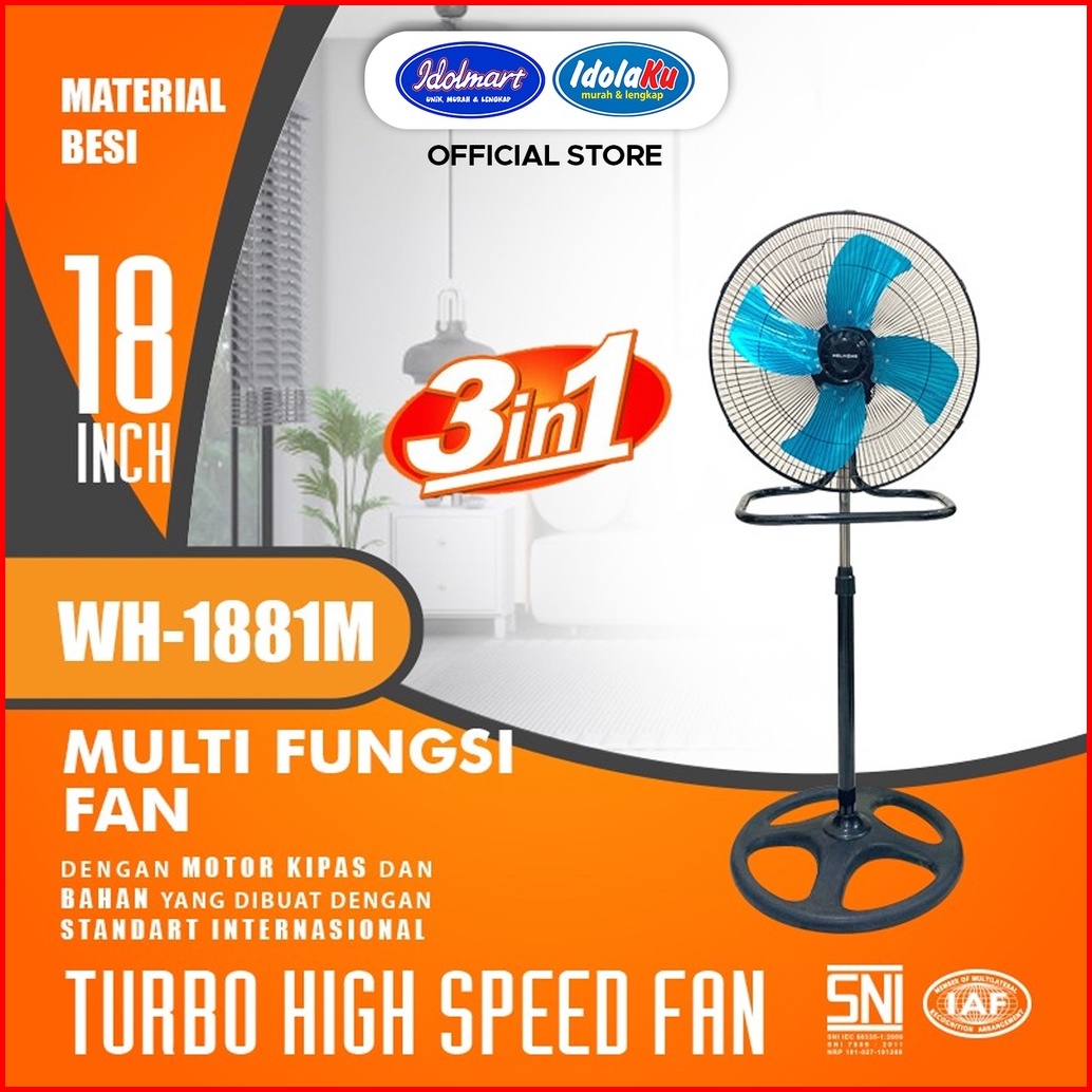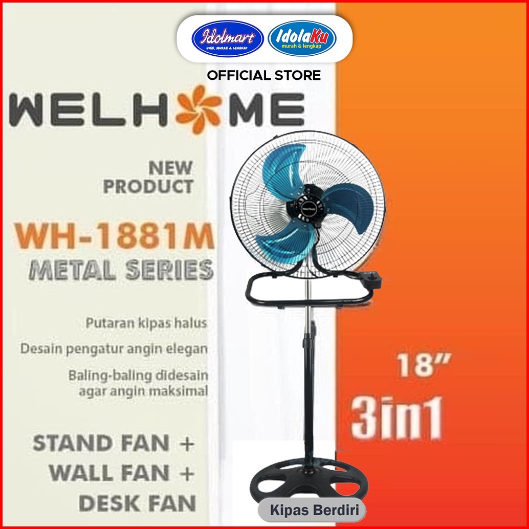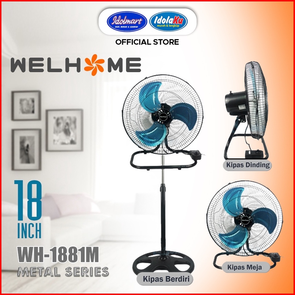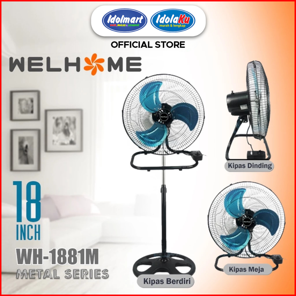 Idolmart Kipas Angin Tornado Besi Welhome 3 In 1 Bisa Berdiri Dinding 18 Inch Garansi 1 Tahun