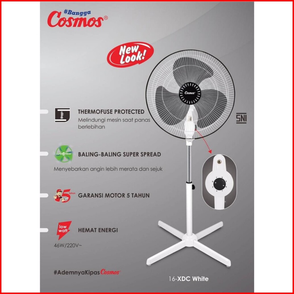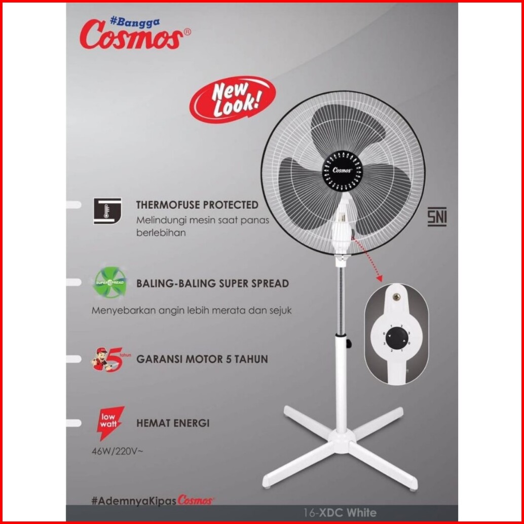 Kipas Angin Cosmos 16 Xdc Berdiri Stand Fan Murah 3 Kecepatan 46 Watt