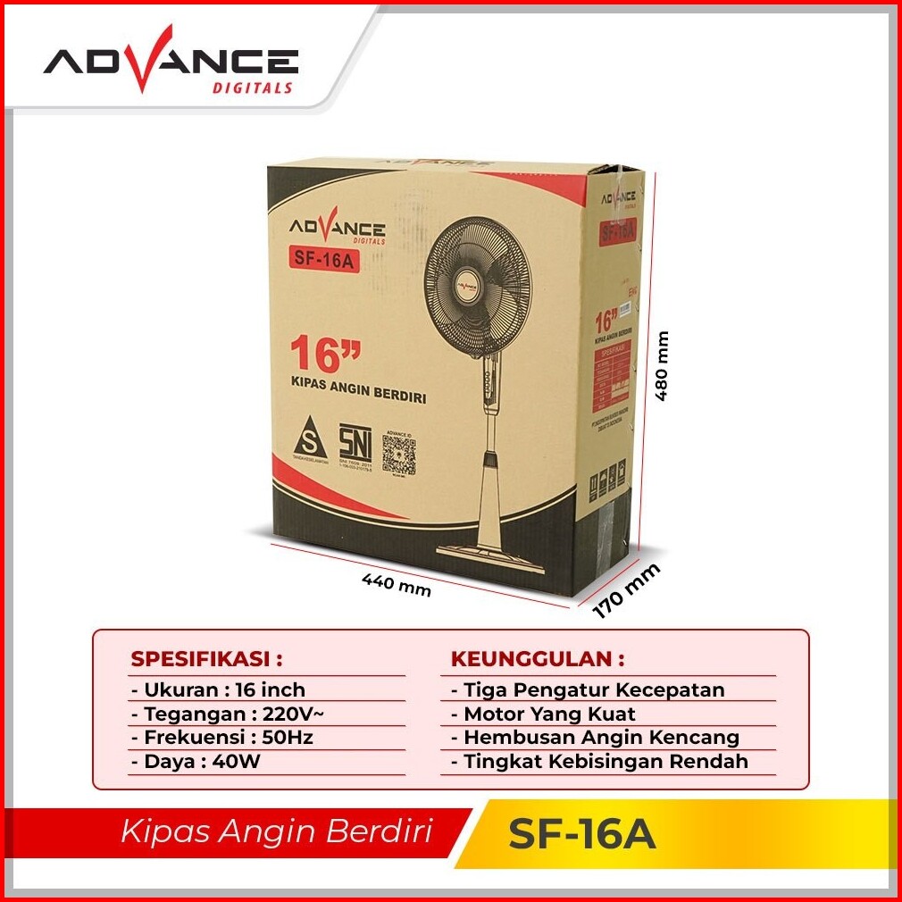 Advance Kipas Angin Berdiri Votre Sf16a Sf-16a 16 Inch Stand Fan