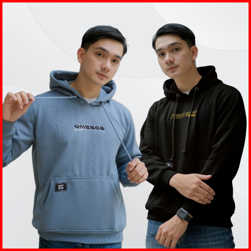 Bozzino - Sweater Hoodie Pria Wanita Little Logo Boxy Fit Up To Big Size Heavyweight