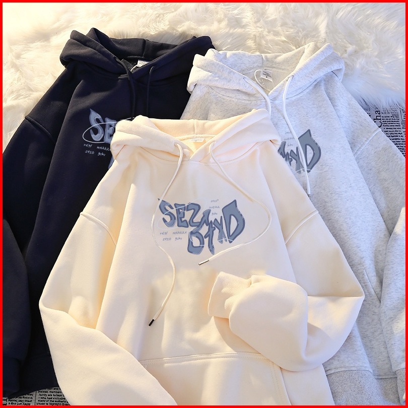 Hoodie Sweater Lengan Panjang Blue Letter Korean Style Sweater Crop Baju Wanita Switer Wanita Switer A0639
