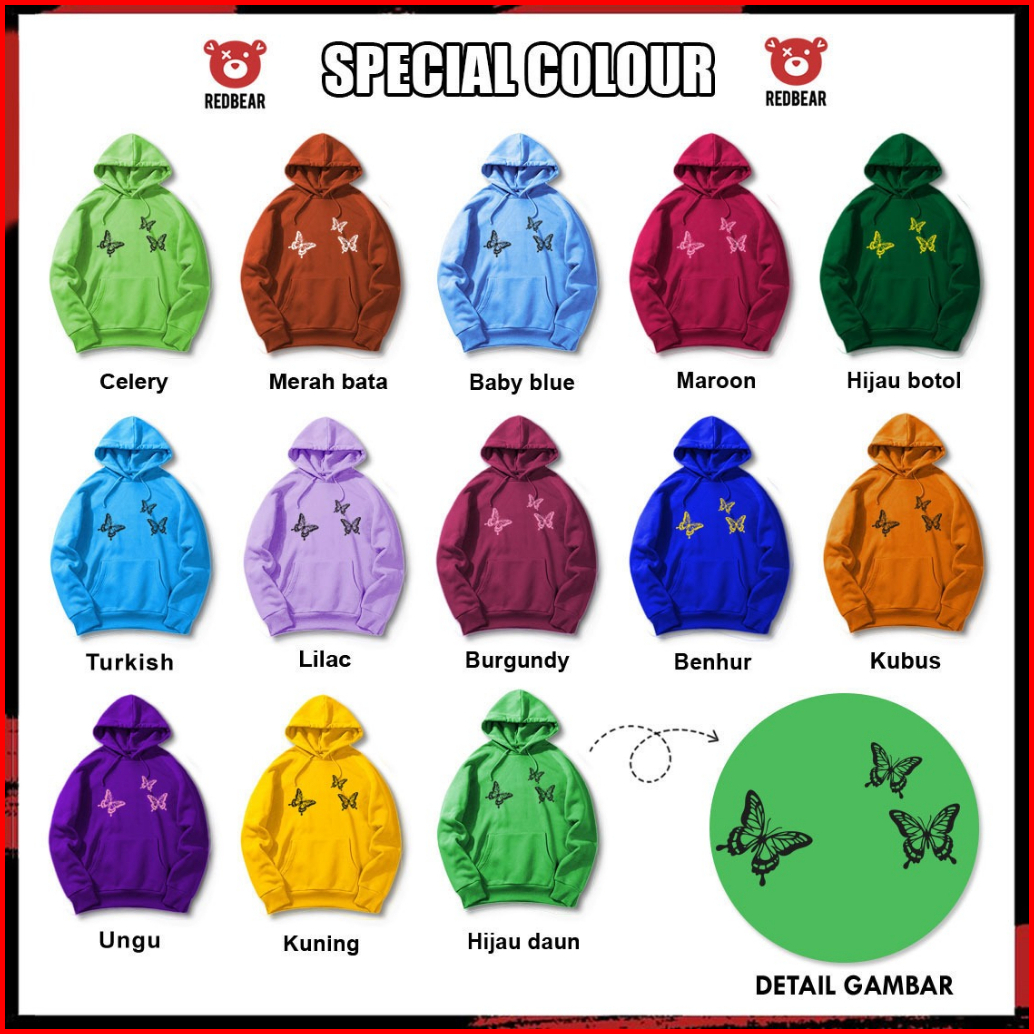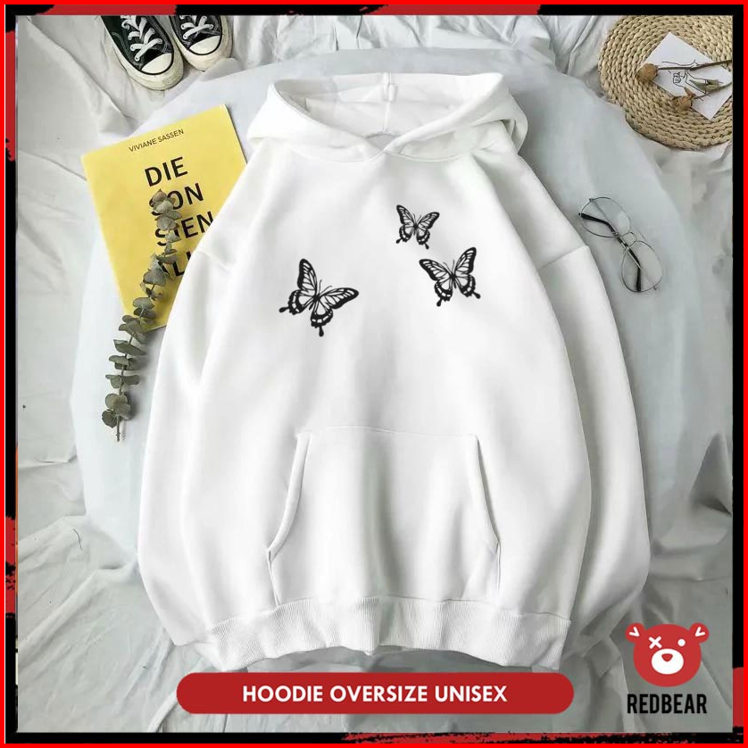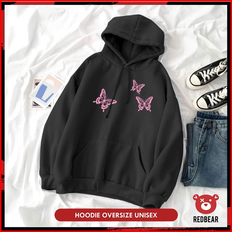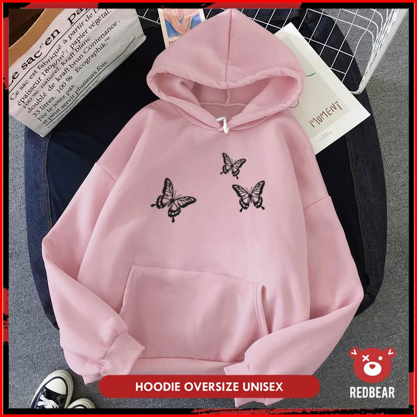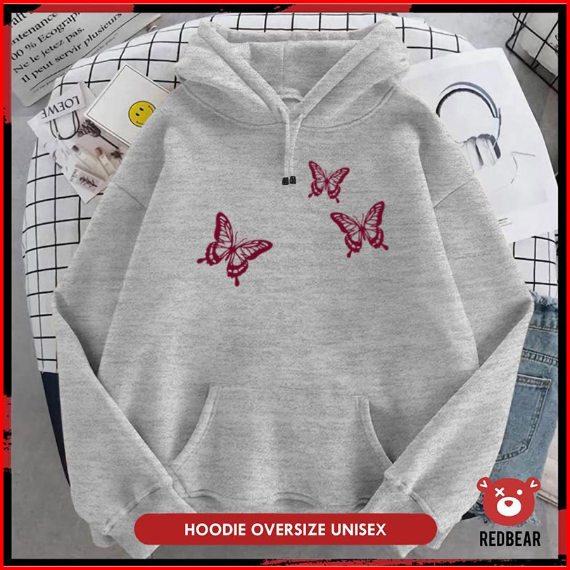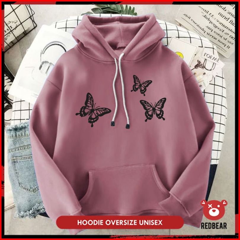 Redbear Hoodie Jumper Kupu Kupu Sablon M-xxl Wanita Pria