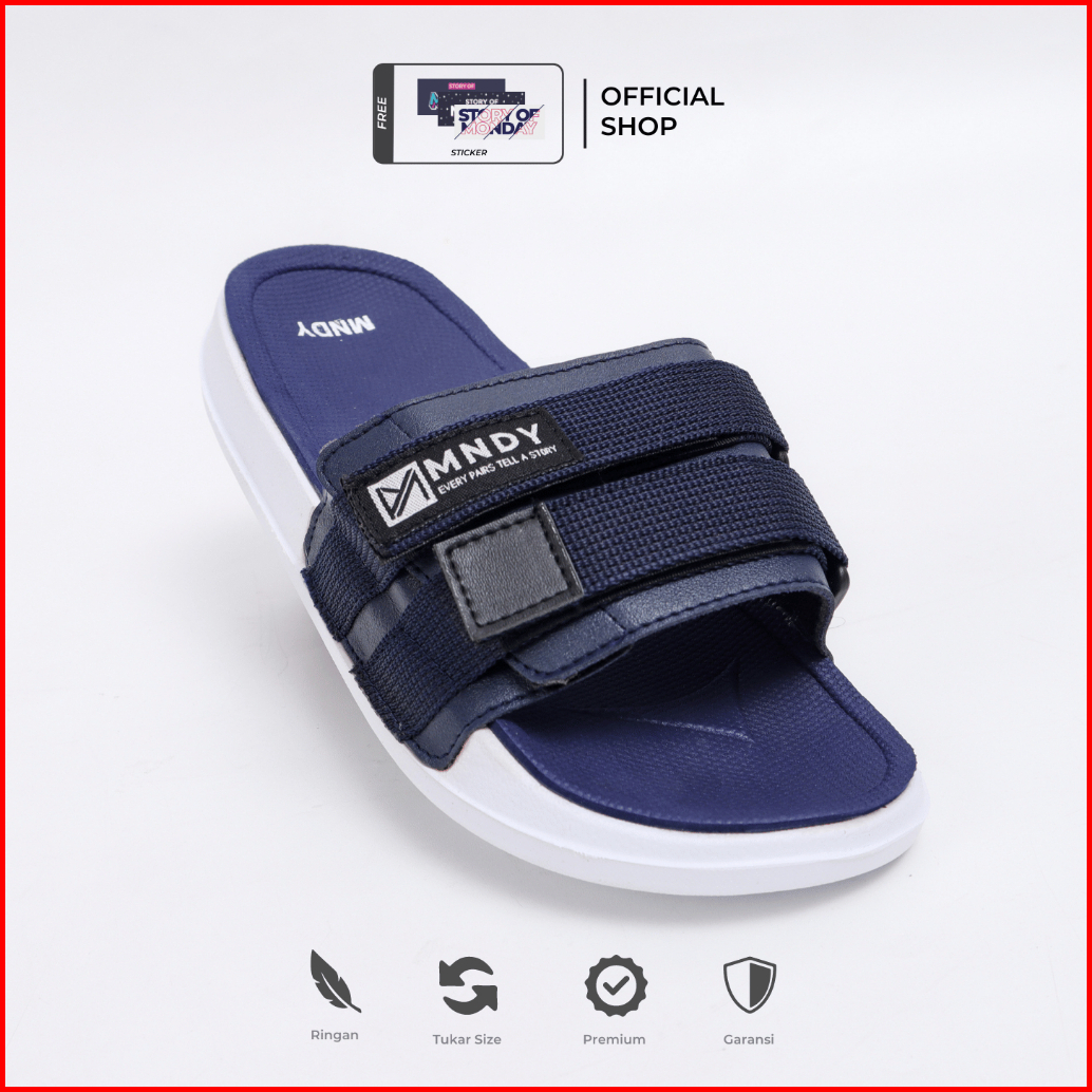Mndy - Pervez Navy - Sandal Slide Ringan Sendal Main Traveling Hotel Rumah