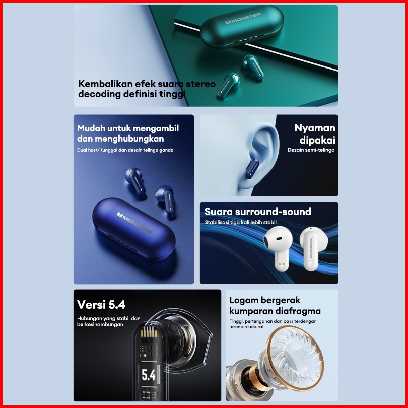 Monster Xkt25 Tws Wireless Bluetooth 5.4 Earphone Hd Sound High Capacity Long Life Low Latency Gaming Headset With Mic