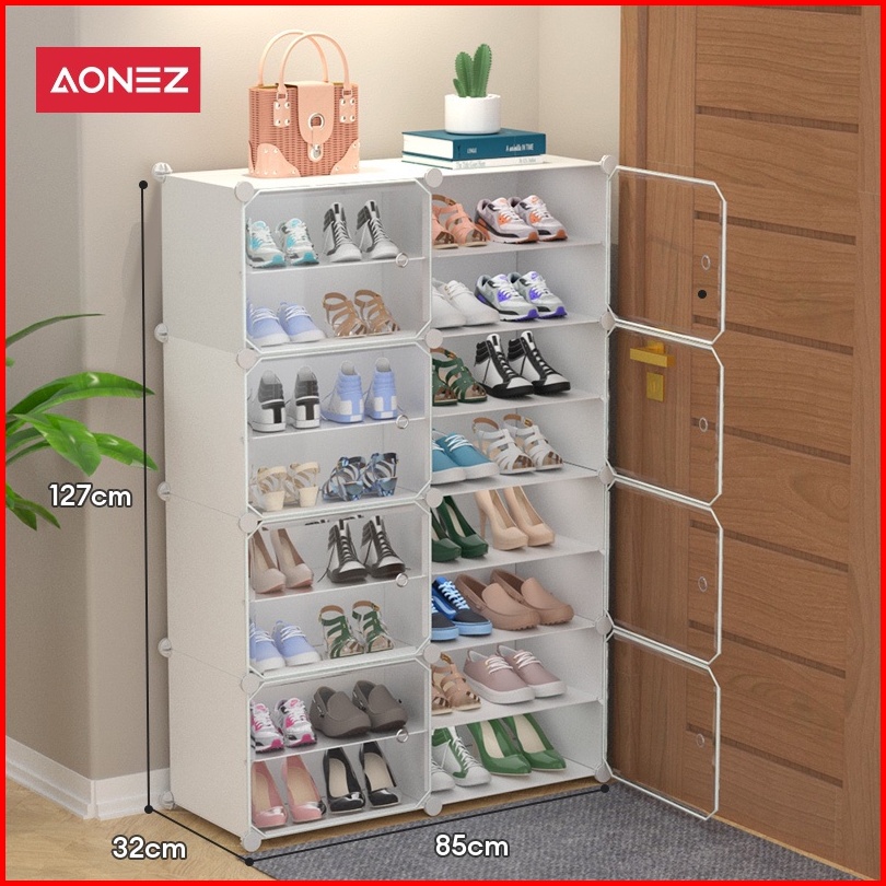 Aonez Rak Sepatu Anti Debu 2 Kolom 8 Layer Kotak Sepatu Tahan Debu Lemari Untuk Ruang Tamu Dan Kamar Tidur