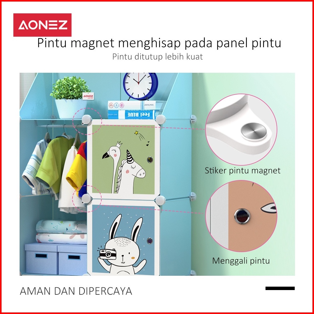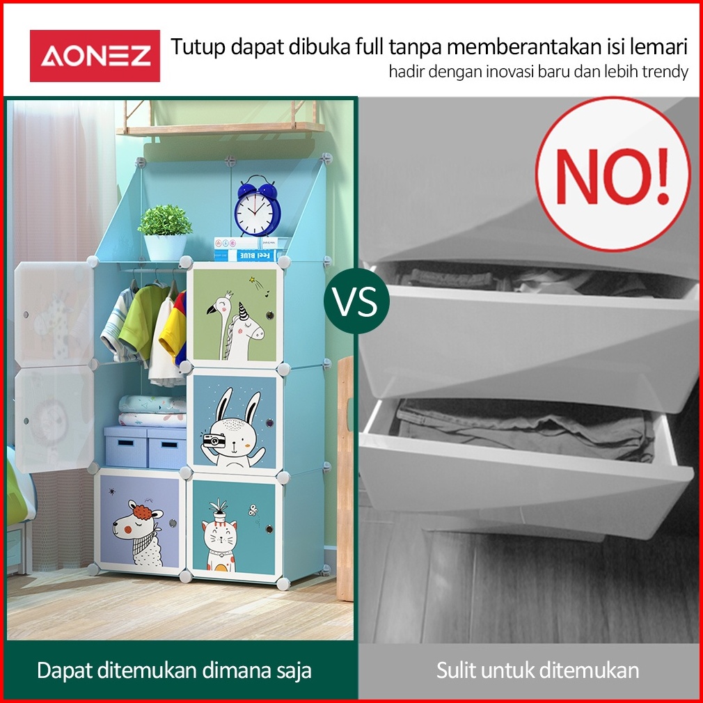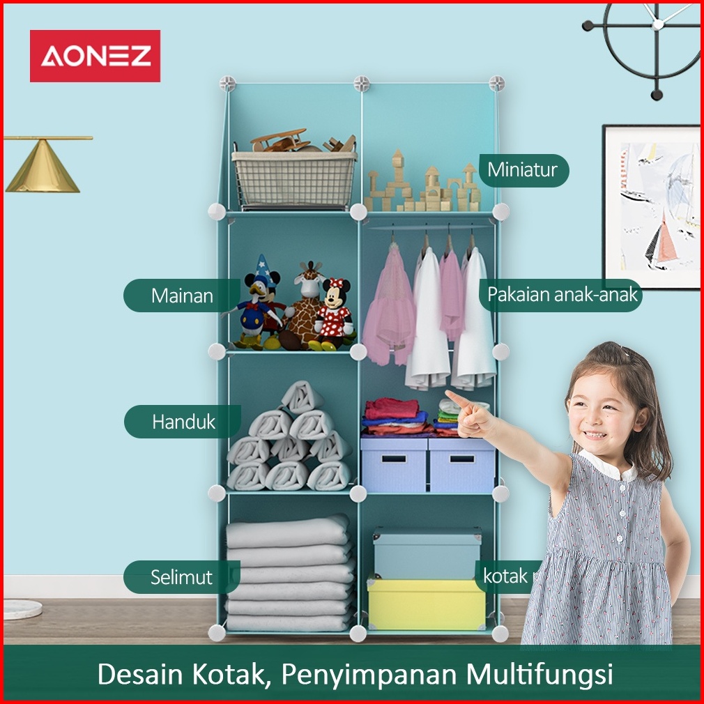 Aonez Lemari Pakaian Plastik Portable Tempat Penyimpanan Baju Wardrobe Almari
