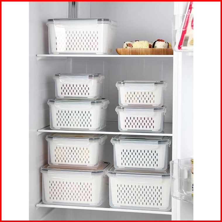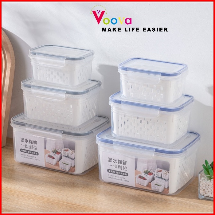 Voova Keranjang Saringan Pengering Sayur Keranjang Buah Pengering Sayuran Saringan Serbaguna Kotak Penyimpanan Multifung