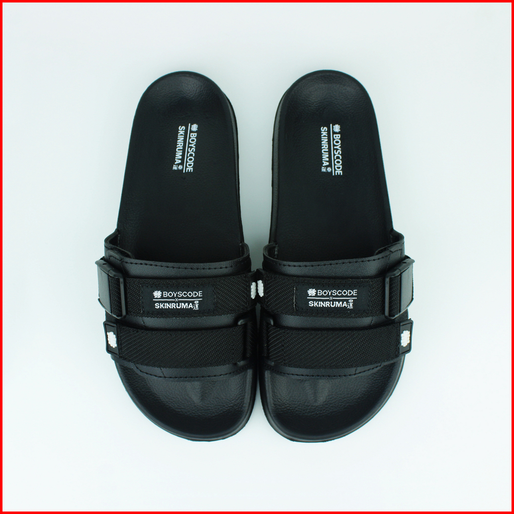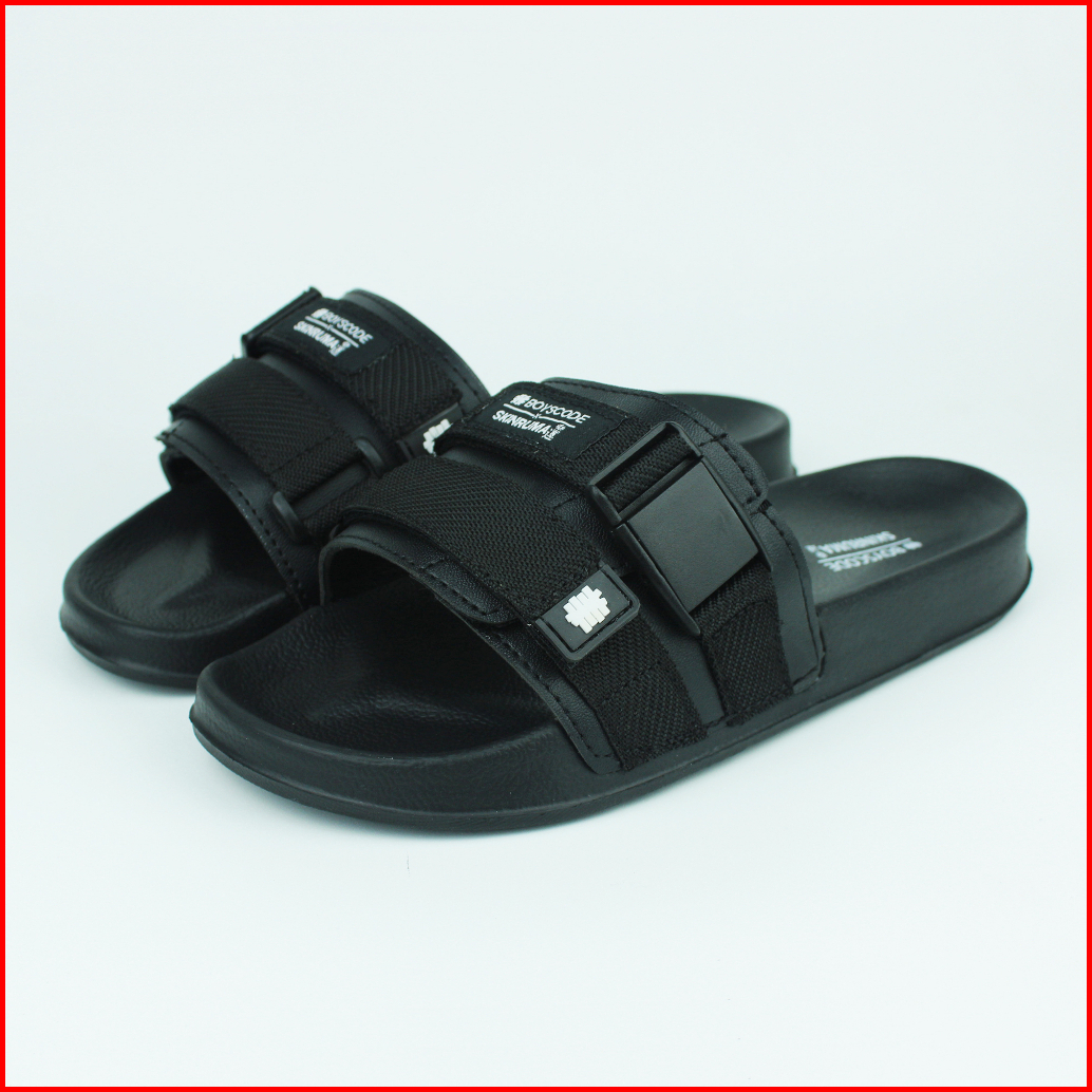 Boyscode Sendal Selop Karet Double Strap Distro Pria Wanita Toshio Hitam Fullblack Slop Pria
