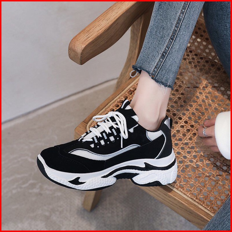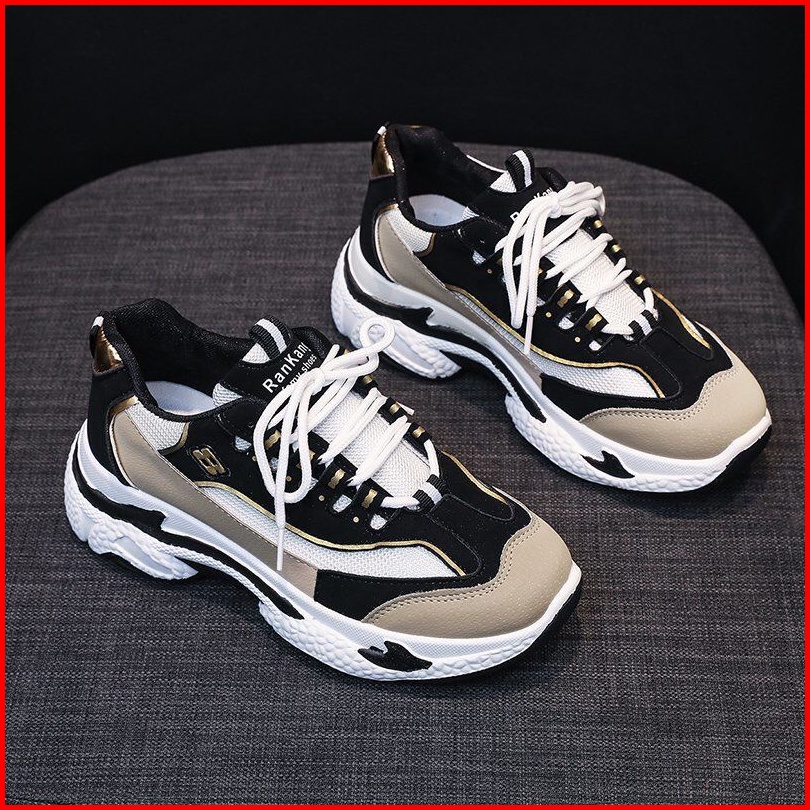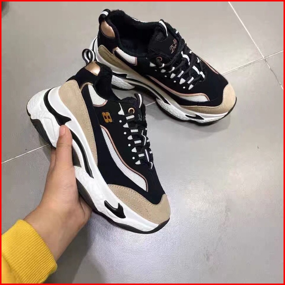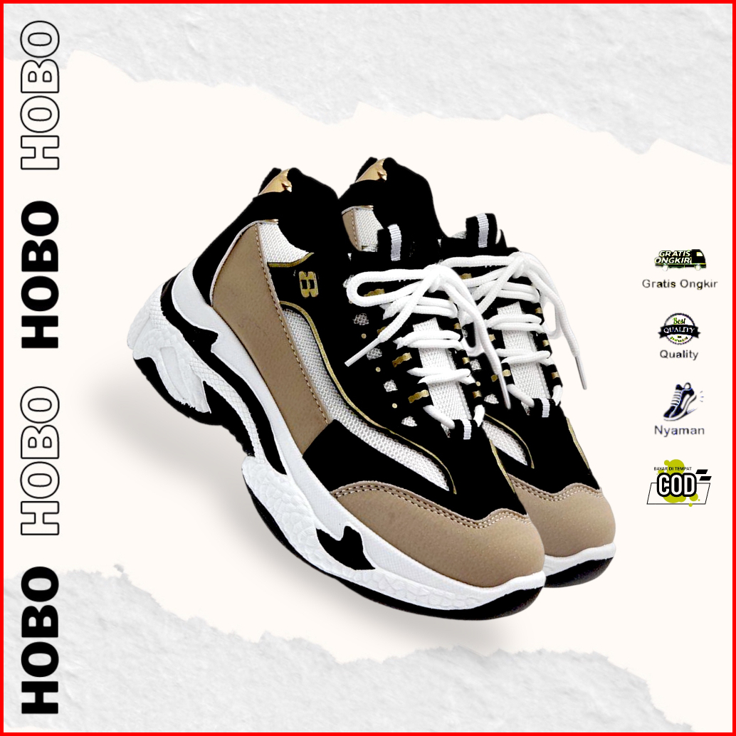 Hobo Id Sneakers Wanita Korea Sepatu Olahraga Warna Coklat Dan Hitam Cewek