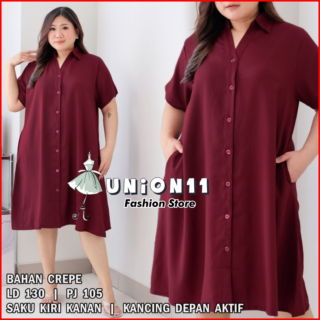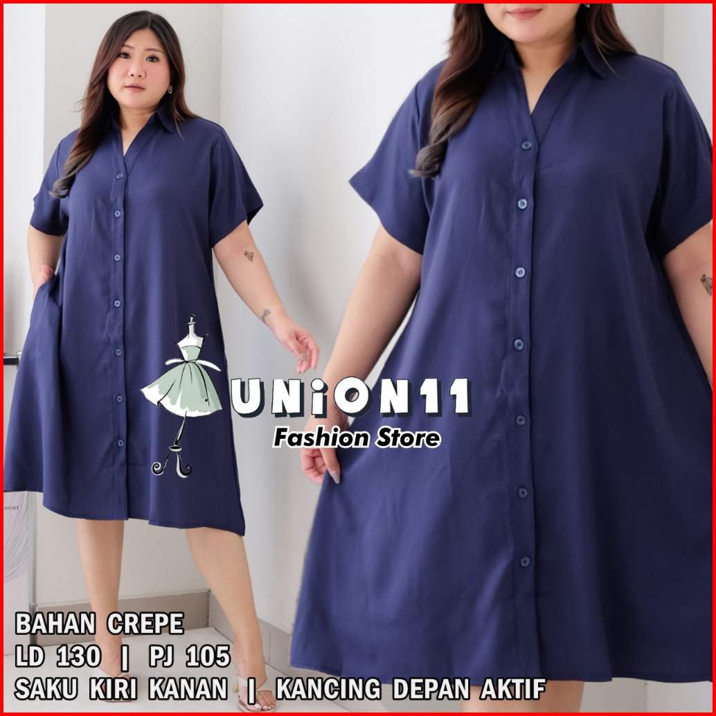 Union11 - Dress Jumbo Wanita Ld 130 Baju Bigsize Wanita Busui Dress Jumbo Xxxxl Wanita Muat Bb 100 Kg Varas