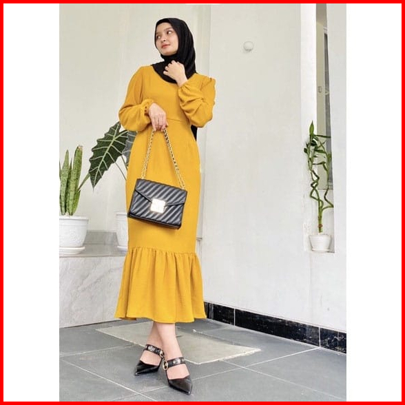 Siska Midi Dress Korean Look Dress Korea Wanita Model Mermaid Atau Duyung