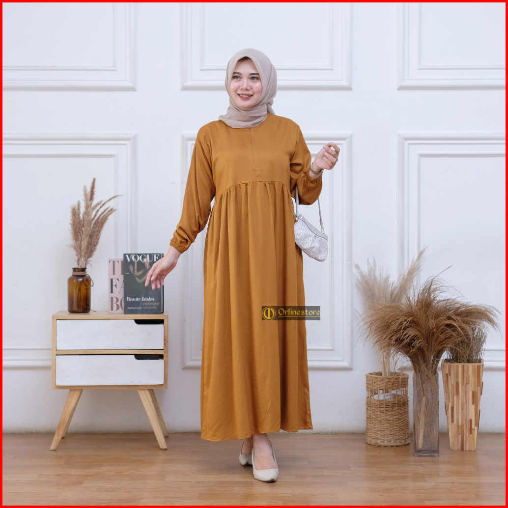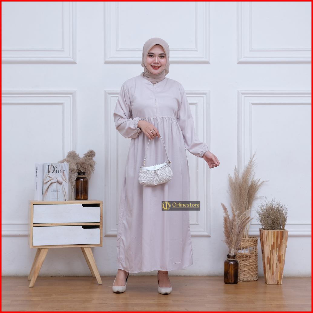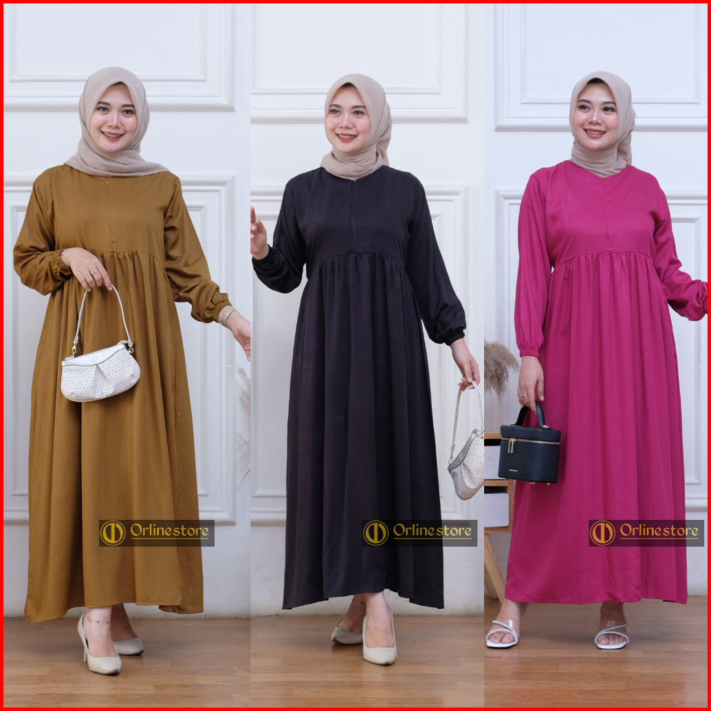 Midi Dress Polos Busui Rayon Twill Nyaman Bumil Busui Friendly