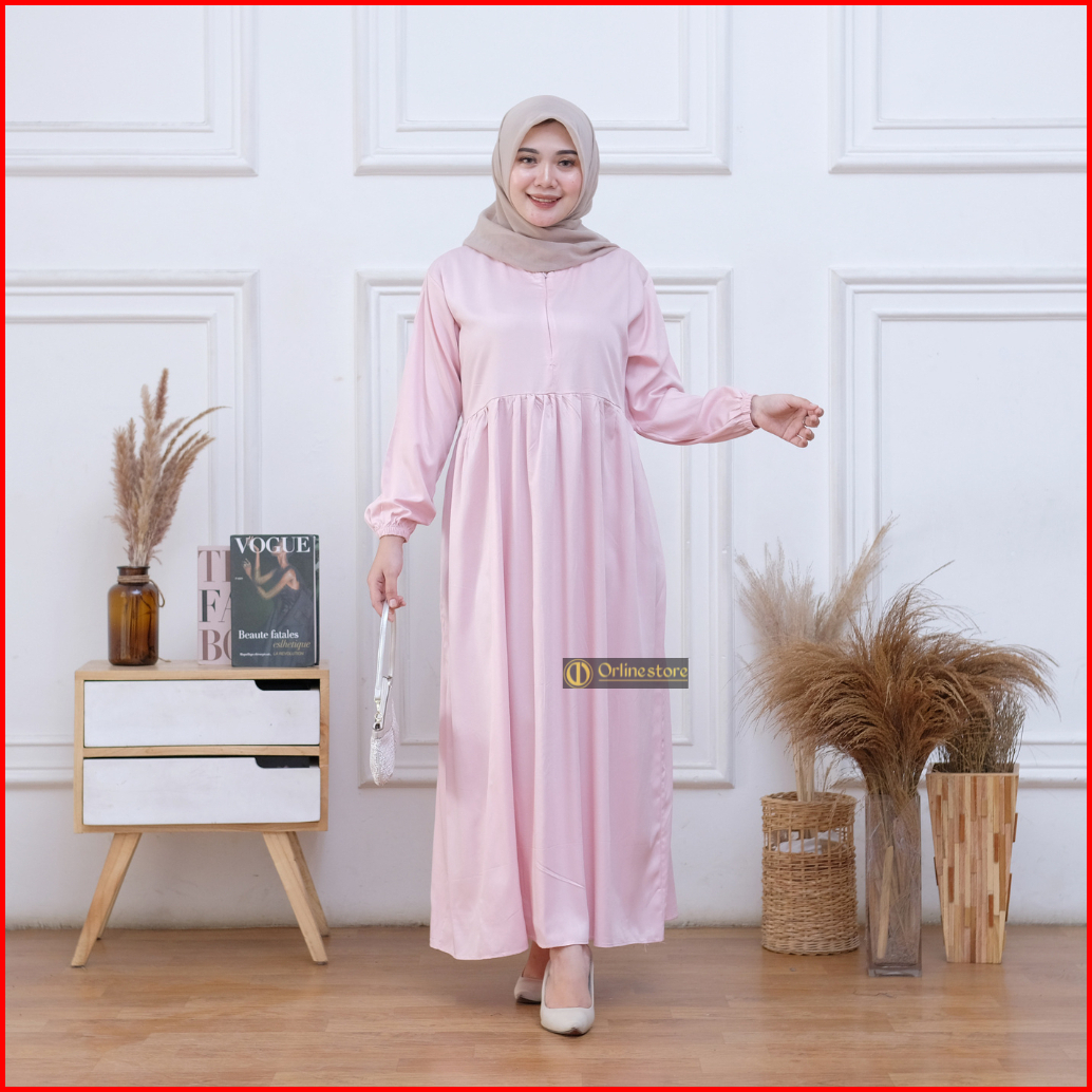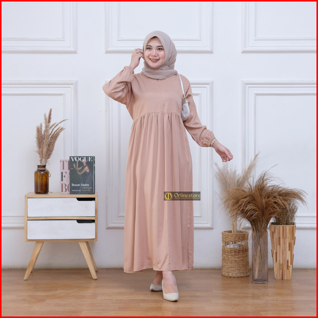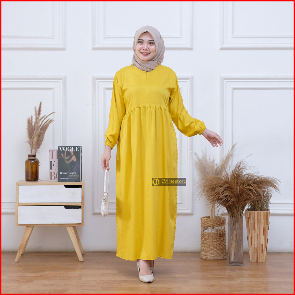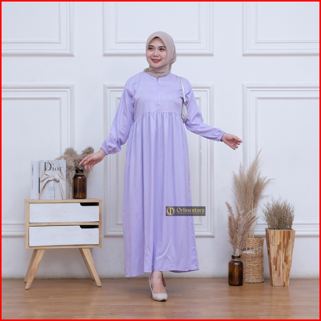 Midi Dress Polos Busui Rayon Twill Nyaman Bumil Busui Friendly