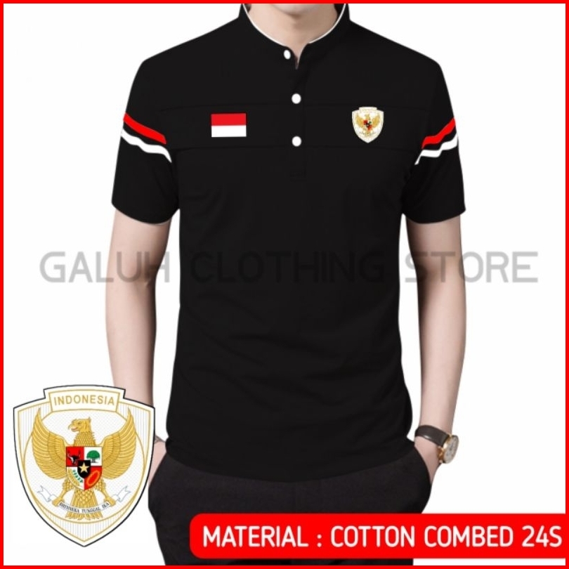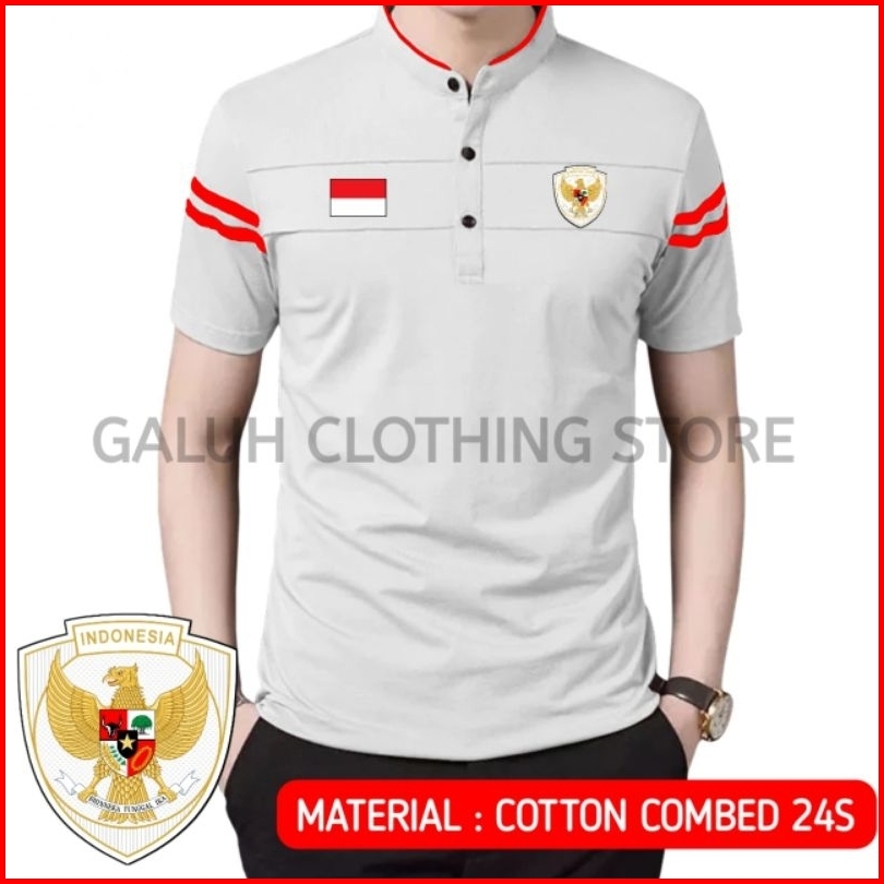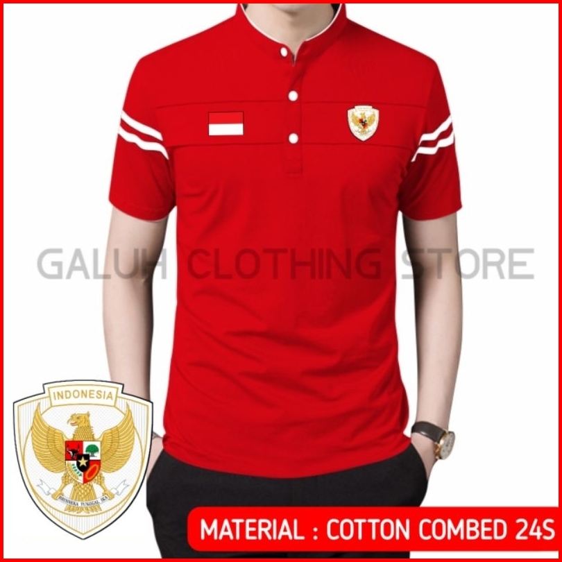 Kaos Polo Shirt Kerah Shanghai Mandarin Pria Edisi Timnas Garuda Indonesia Baju Agustusan Keren Terbaru Terlaris Kekinia