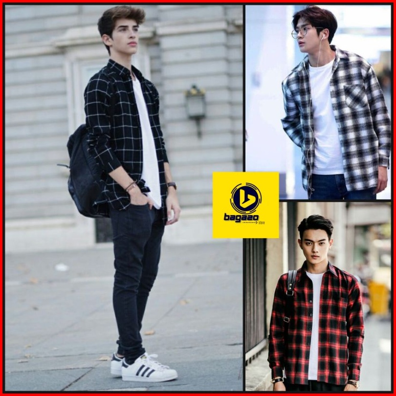 Kemeja Flanel Lengan Panjang Pria Wanita Casual Distro Surfing Motif Square Unisex Terlaris